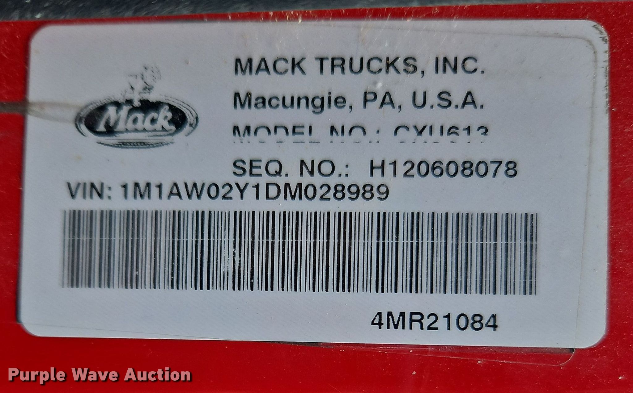Purple Wave is selling a used Truck Tractor in Indiana. This item is a 2013 Mack CXU semi truck with the following: Miles: 704,696 on odometer, VIN: 1M1AW02Y1DM028989