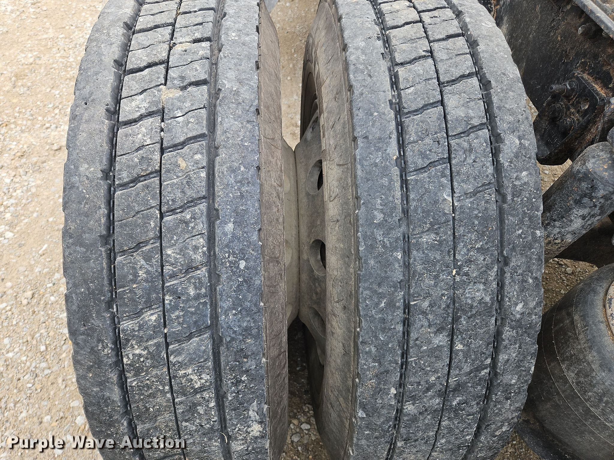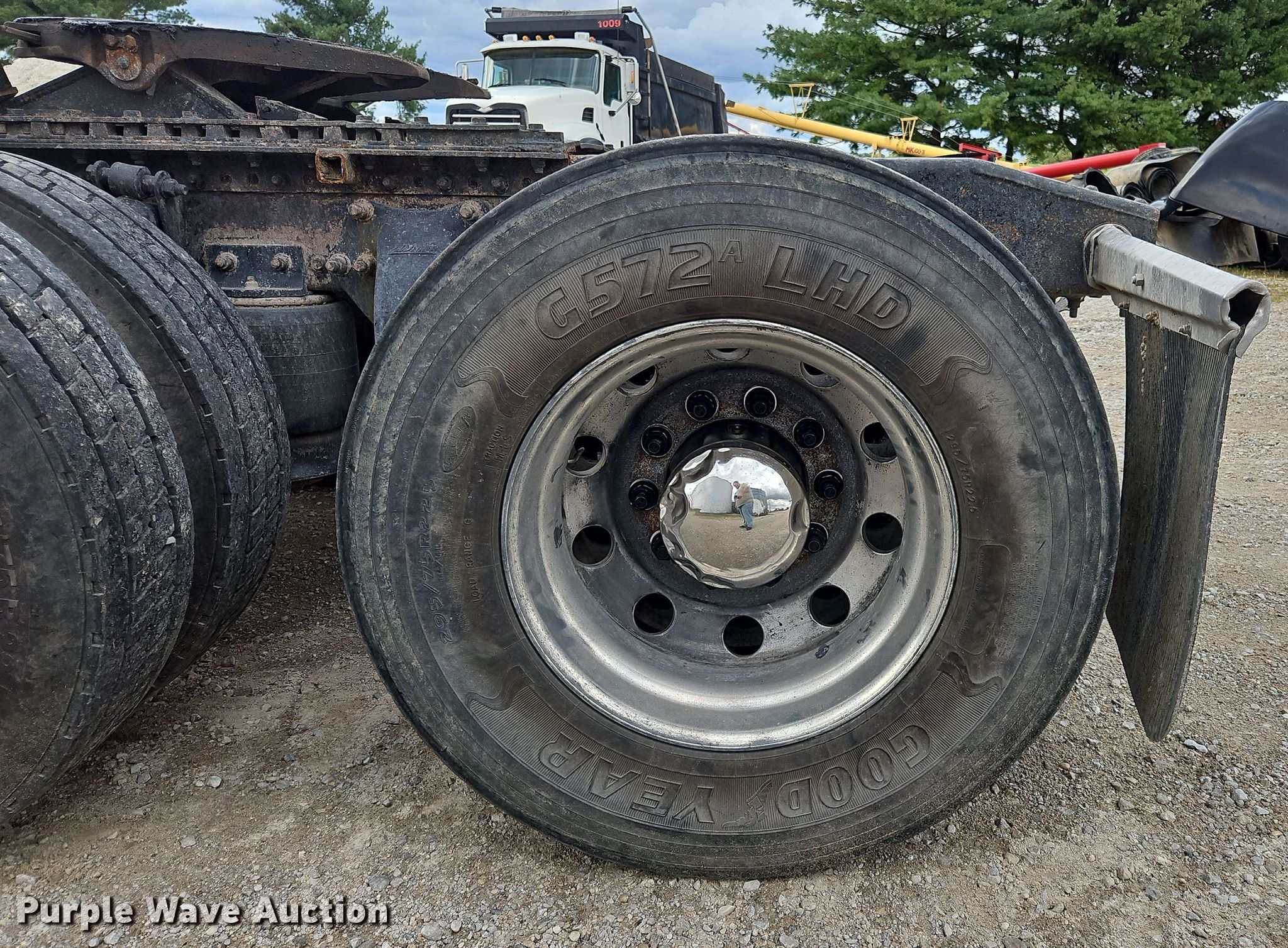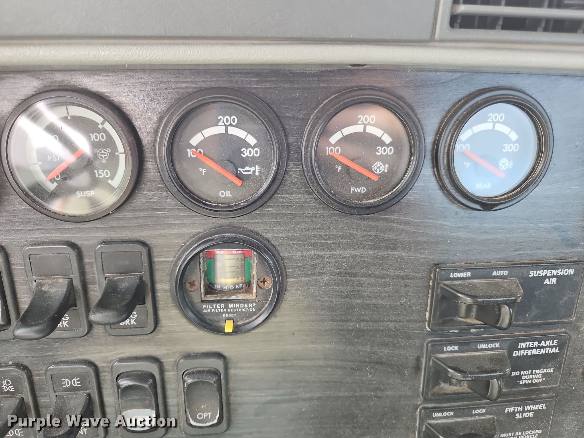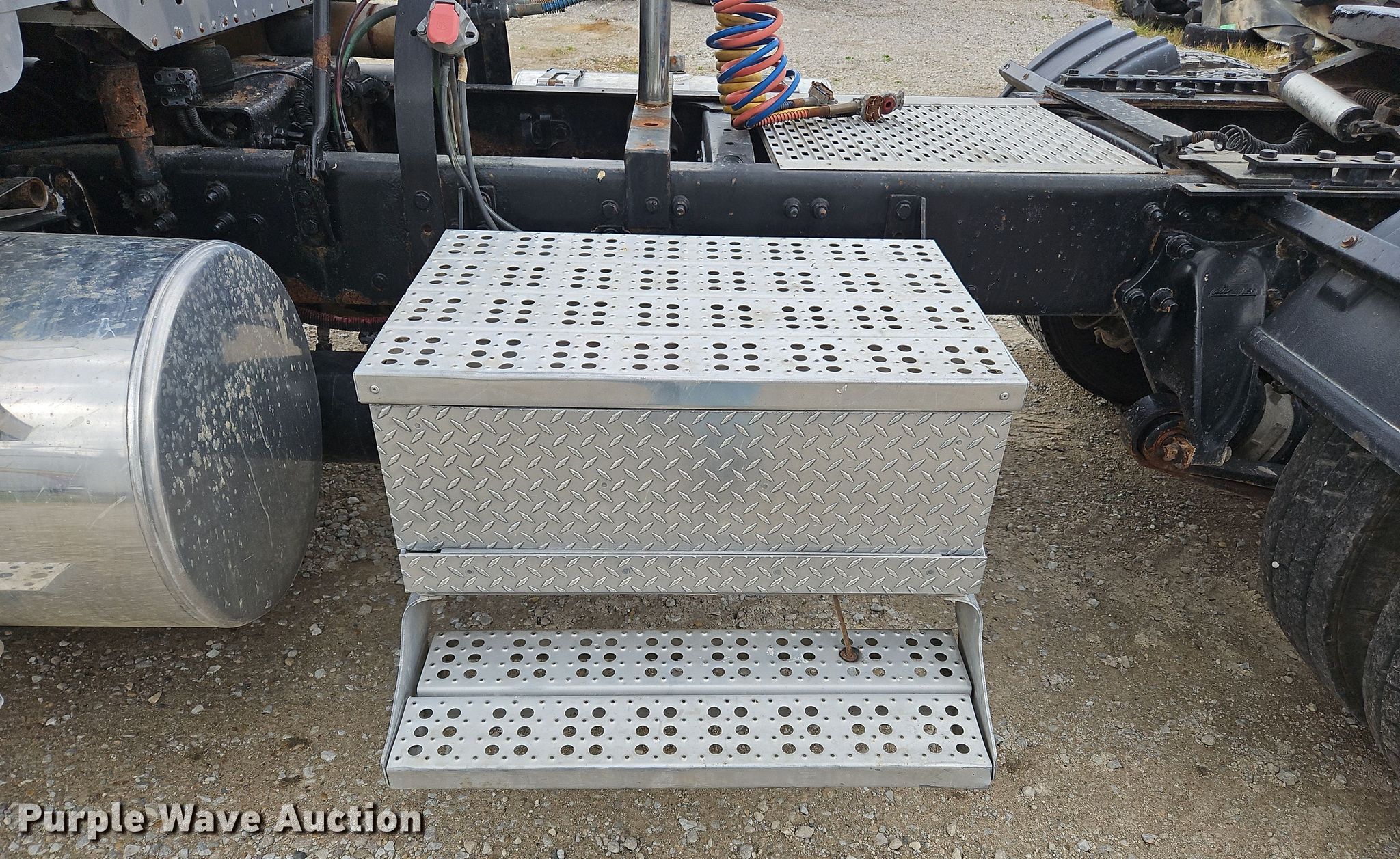 2004 Freightliner Columbia semi truck. Miles: 939,727 on odometer, VIN: 1FUJA6CV84LN03459. Engine Mercedes Benz, Displacement: 12.8L, Cylinders: 6, Fuel type: Diesel, Engine brake. Transmission Eaton Fuller, Manual, Speed: 10. Chassis Axles: Tandem, Differential lock: Inter-axle, Suspension: Air Dump valves, Brakes: Air, PTO. Interior AC, Heat, Power windows, Cruise control, Air ride cab. Features Deck plate: Aluminum, Fifth wheel type: Air operated, Sliding, Fuel tank: Dual. Tires Front: 11R22.5, Rear: 295/75R22.5. Notes Windshield chipped or cracked. Indiana title. Scott Dehart Farms. Trafalgar, IN 46181