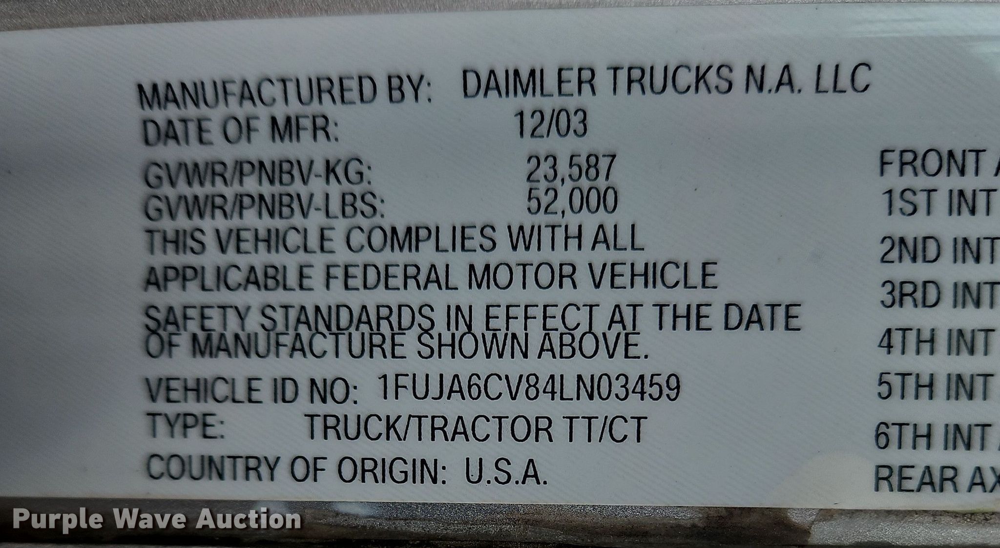 Purple Wave is selling a used Truck Tractor in Indiana. This item is a 2004 Freightliner Columbia semi truck with the following: Miles: 939,727 on odometer, VIN: 1FUJA6CV84LN03459
