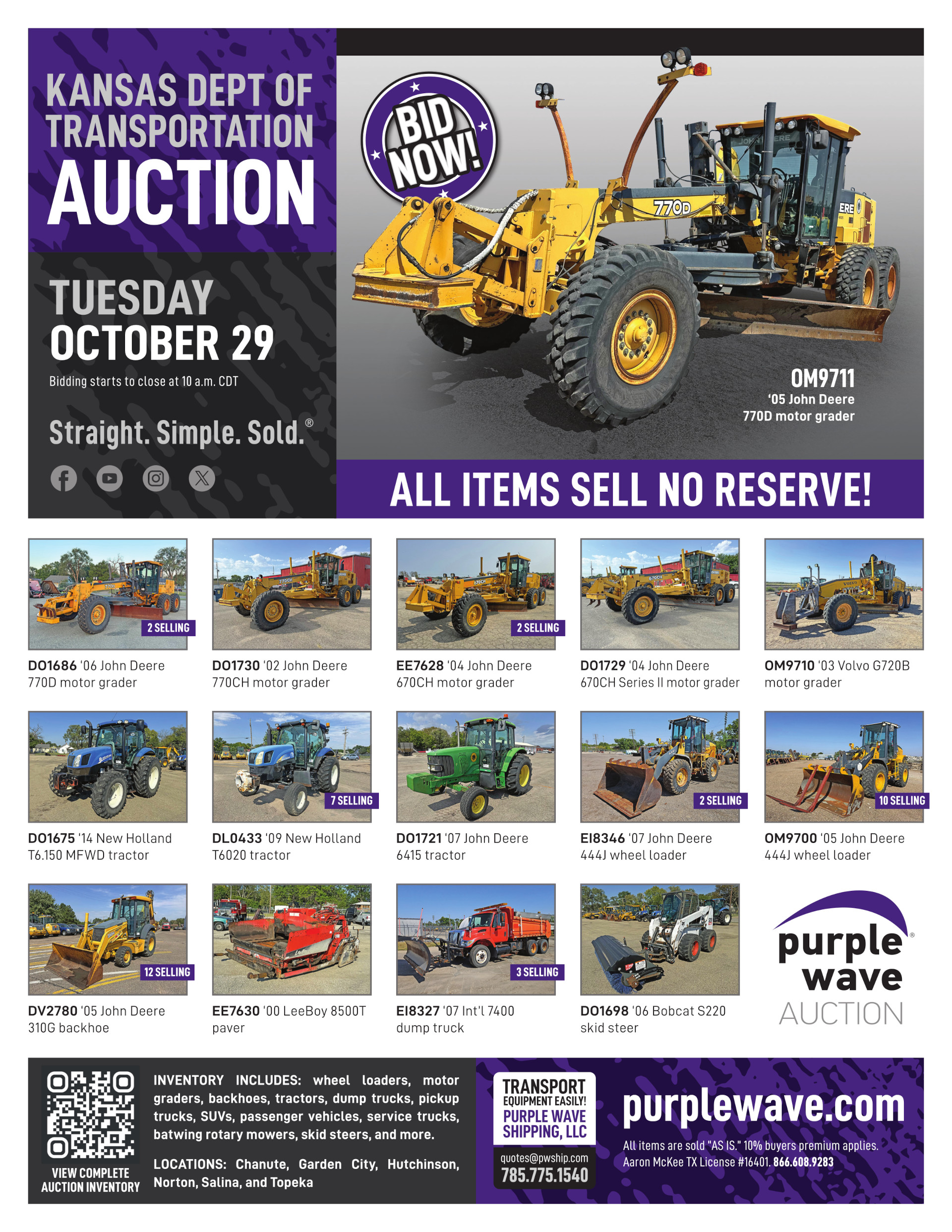 SOLD! Kansas Department of Transportation Auction | 10-29-2024
