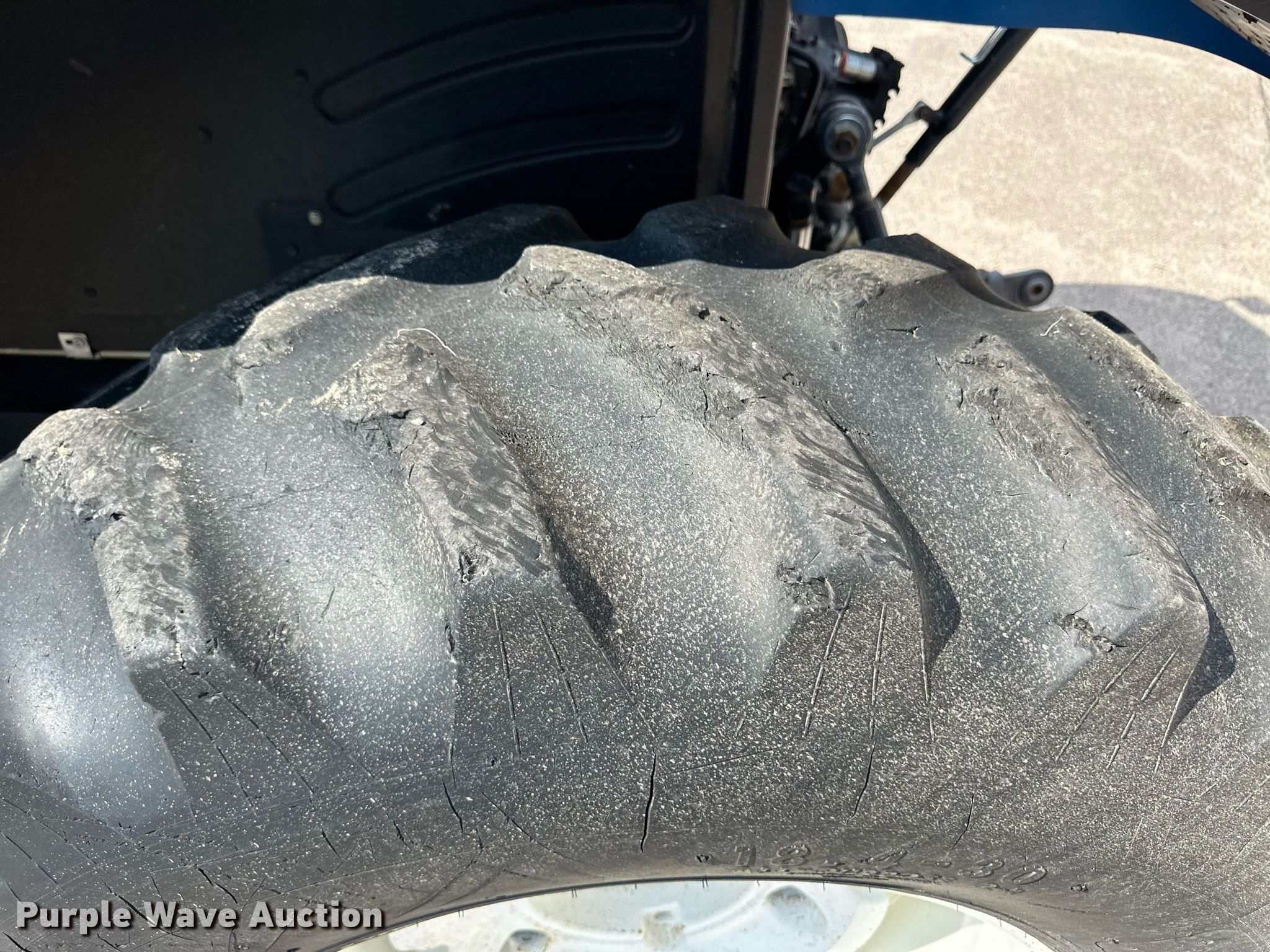 2009 New Holland T6020 tractor. Hours: 5,240 on meter, Serial: Z8BD21634, KDOT ID: 352-3049. Engine Cylinders: 4, Fuel type: Diesel. Transmission Dual command, 24F - 24R, Left-hand reverser, Differential lock. Operators station AC, Heat. Features PTO: 540, Three point Top link, Seven pin outlet, Hydraulic remote sets Rear: 3. Tires Front: 11L-16SL, Rear: 18.4-30. Notes Non-operational parking brake, Transmission issues, difficult to shift into forward gears , Draw bar damaged. Kansas Department of Transportation - Norton. Norton, KS 67654