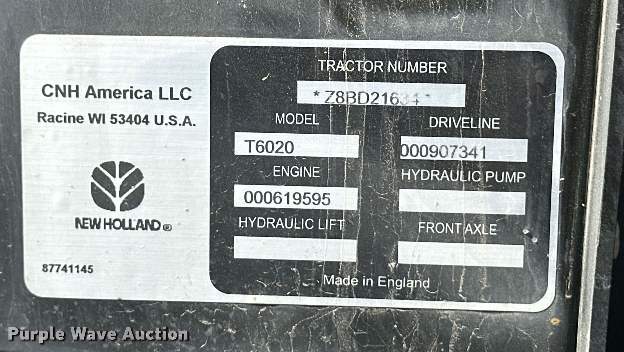 Purple Wave is selling a used Tractor in Kansas. This item is a 2009 New Holland T6020 tractor with the following: Hours: 5,240 on meter, Serial: Z8BD21634, KDOT ID: 352-3049