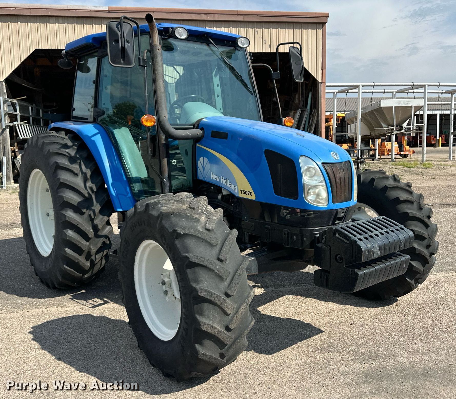 Purple Wave is selling a used Tractor in Kansas. This item is a 2011 New Holland T5070 MFWD tractor with the following: Hours: 3,758 on meter, Serial: ZBJH08755, KDOT ID: 352-3011