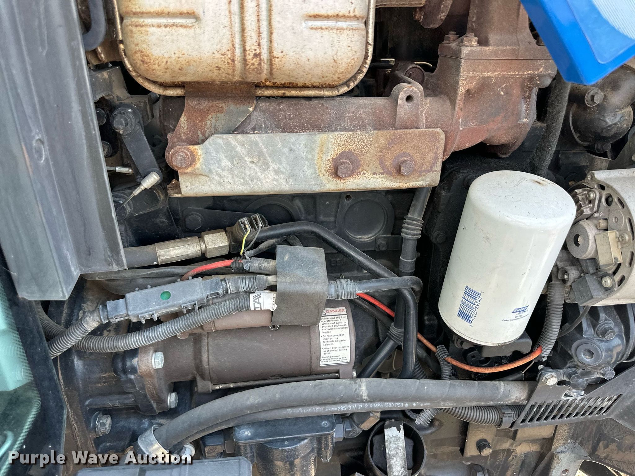 2011 New Holland T5070 MFWD tractor. Hours: 3,758 on meter, Serial: ZBJH08755, KDOT ID: 352-3011. Engine CNH 445TAMLA, Serial: 00856966, Displacement: 274 C.I.D., Cylinders: 4, Fuel type: Diesel. Transmission Synchro, 12F - 12R, Left-hand reverser, Differential lock. Operators station AC, Heat. Features PTO: 540, Three point Top link, Seven pin outlet, Hydraulic remote sets Rear: 3, Suitcase weights: 10. Tires Front: 380/85R24, Rear: 460/85R34. Notes Non-operational temperature gauge, Unit overheats in hot weather, Wheel seal leak, Hydraulic leak. Kansas Department of Transportation - Norton. Norton, KS 67654