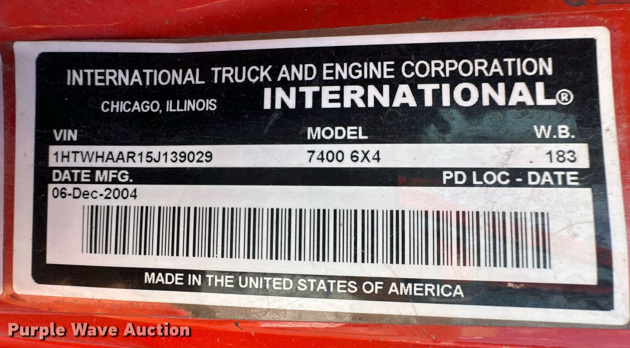 Purple Wave is selling a used Construction Dump Truck in Kansas. This item is a 2005 International 7400 dump truck with the following: Miles: 181,575 on odometer, VIN: 1HTWHAAR15J139029, KDOT ID: 264-3054