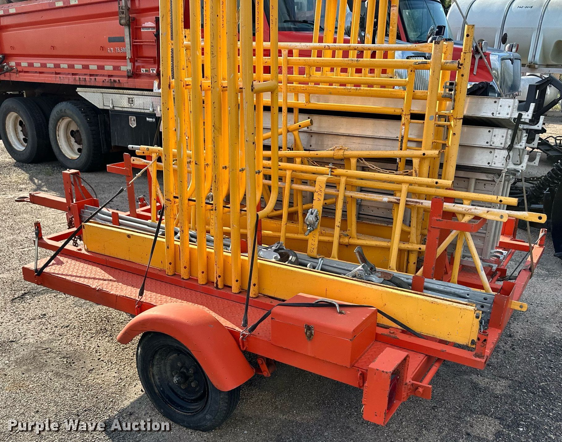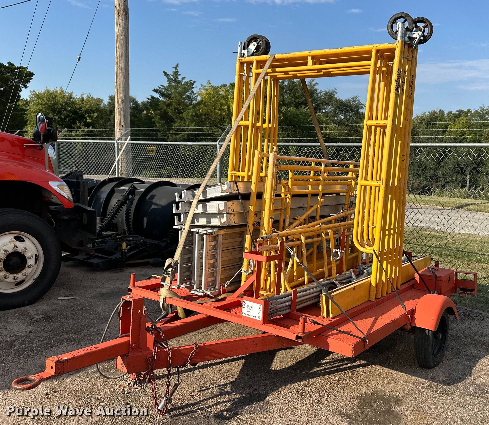 Purple Wave is selling a used Car or Utility Trailer in Kansas. This item is a Utility trailer with scaffolding with the following: KDOT ID: 3-1463