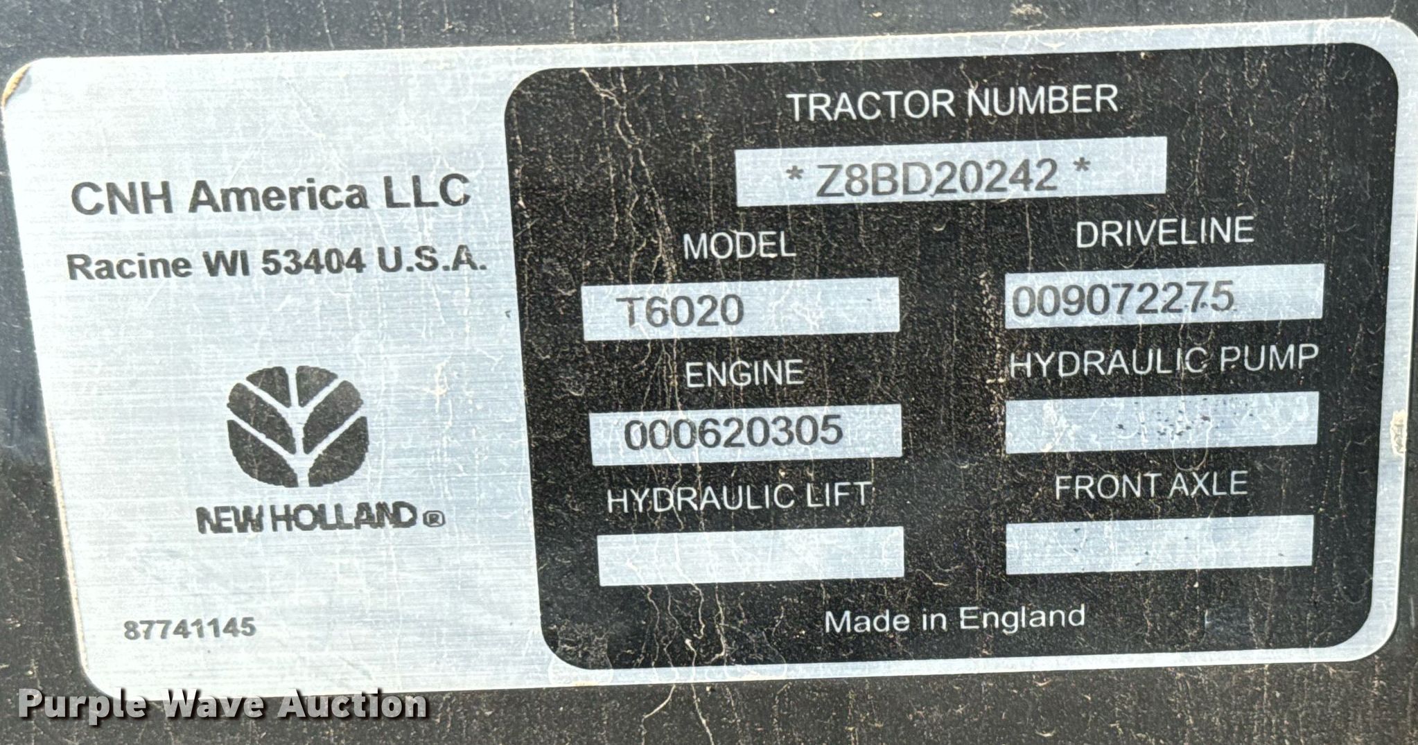 Purple Wave is selling a used Tractor in Kansas. This item is a 2009 New Holland T6020 tractor with the following: Hours: 5,671 on meter, Serial: Z8BD20242, KDOT ID: 352-2139