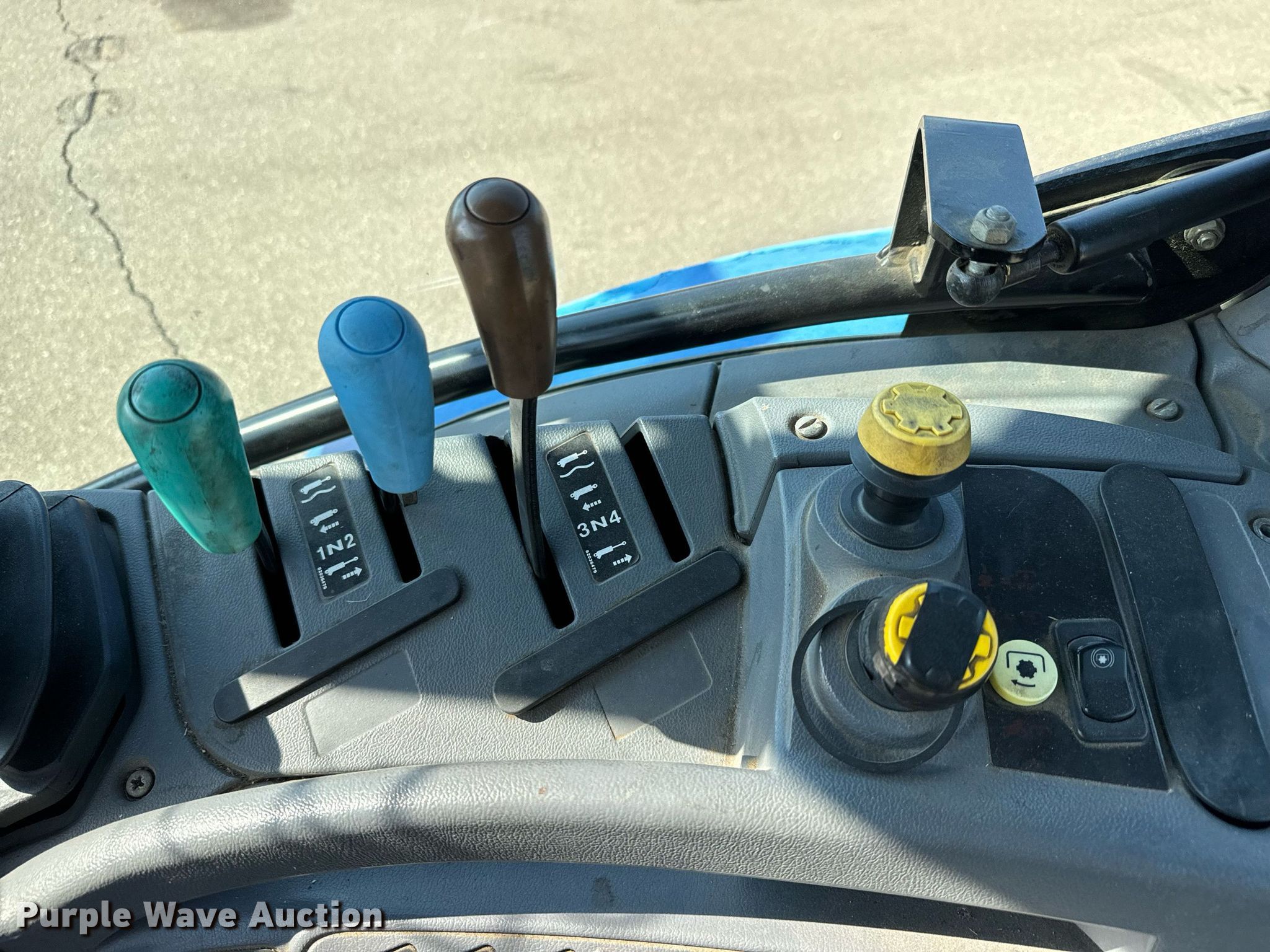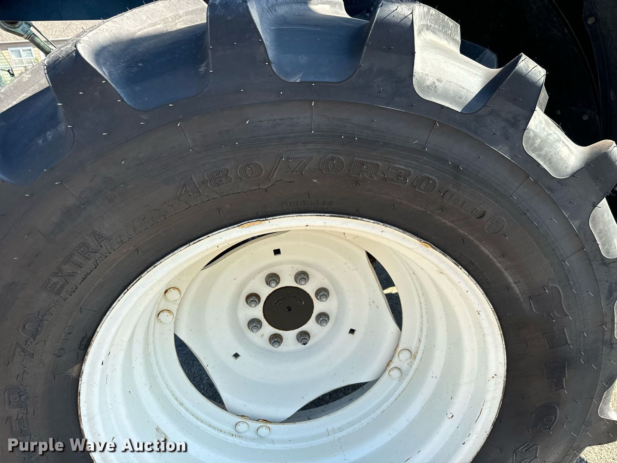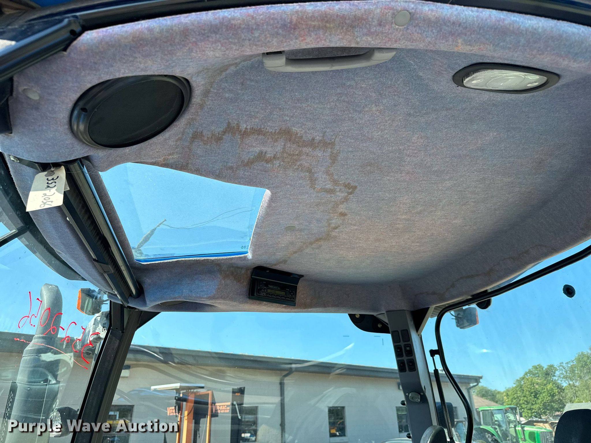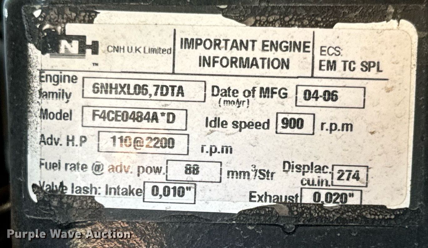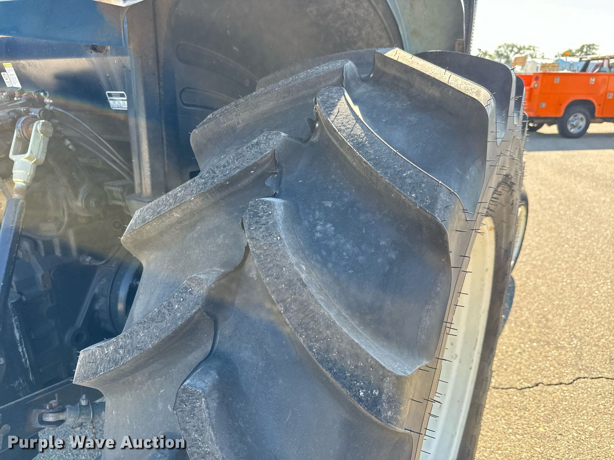 2006 New Holland TS-110A tractor. Hours: 6,160 on meter, Serial: ACP270121, KDOT ID: 352-2056. Engine CNH F4CE0484AD, Cylinders: 4, Fuel type: Diesel, HP: 110. Transmission Dual command, 24F - 24R, Differential lock. Operators station AC, Heat. Features PTO: 540, Three point Top link, Seven pin outlet, Hydraulic remote sets Rear: 3, Suitcase weights: 6. Tires Front: 11L-16, Rear: 480/70R30. Notes Warning indicator: Master warning, Dead battery, Interior damage, Rust damage, Fenders damaged. Kansas Dept. of Transportation. Salina, KS 67401