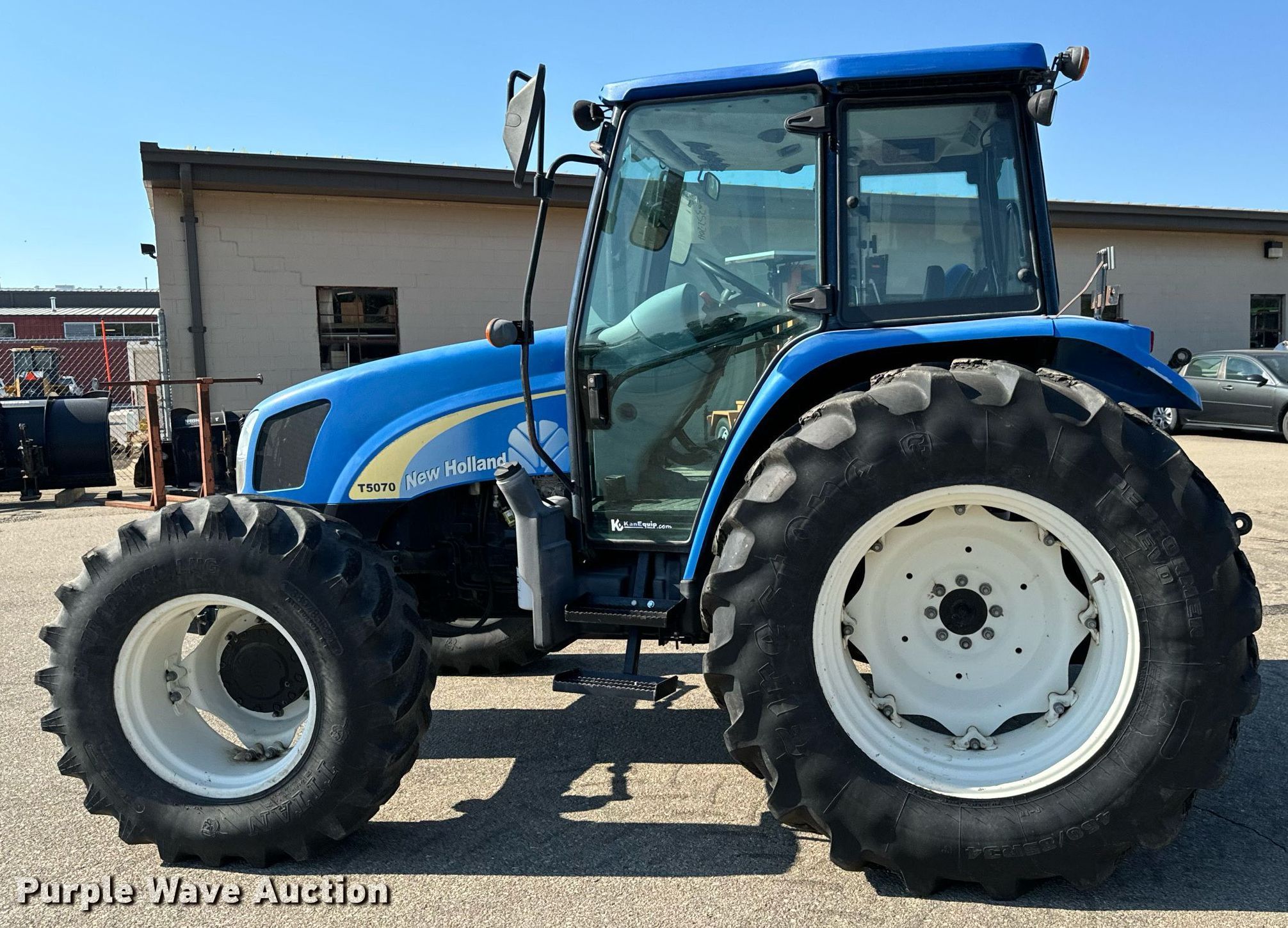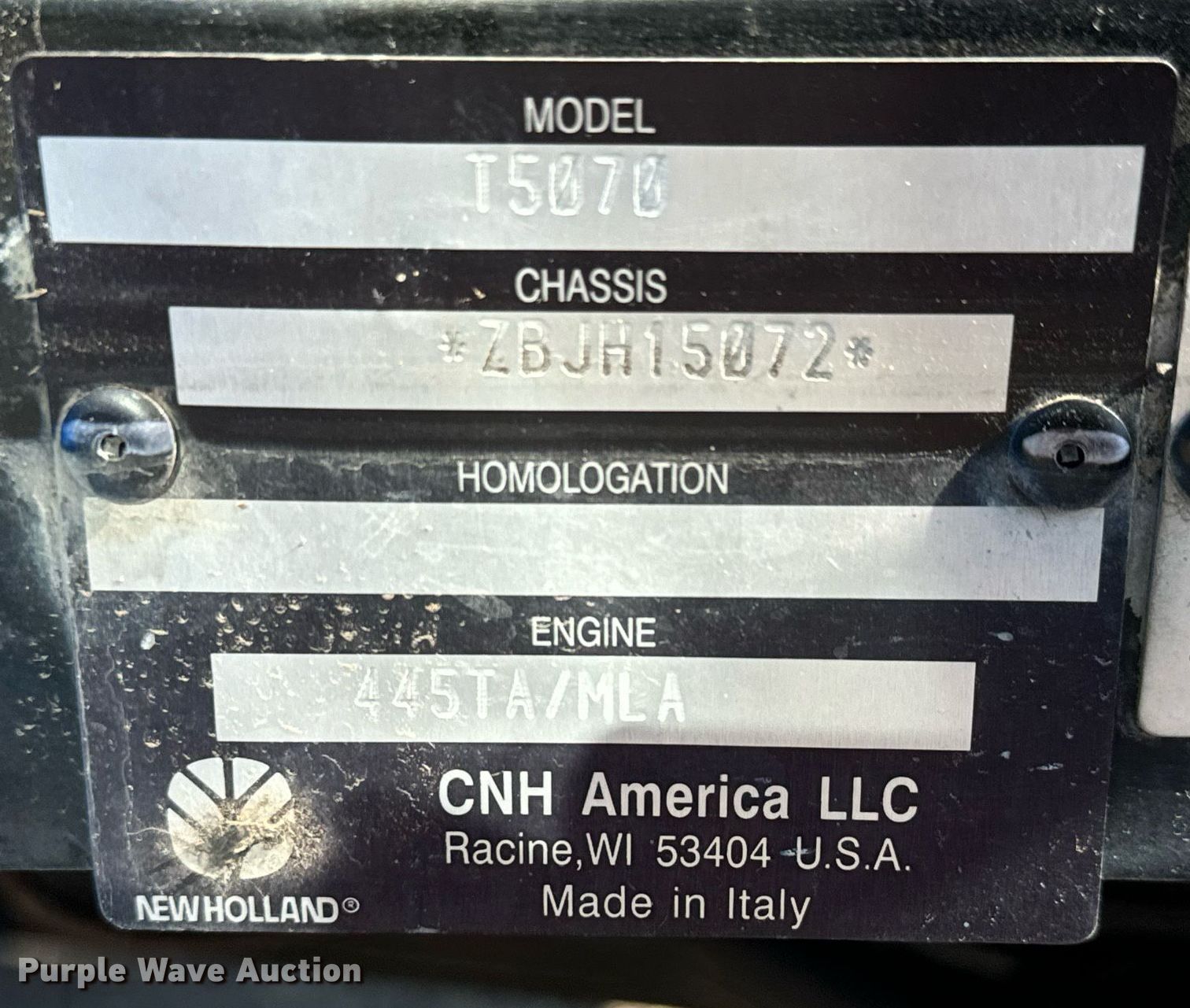 Purple Wave is selling a used Tractor in Kansas. This item is a 2011 New Holland T-5070 MFWD tractor with the following: Hours: 5,018 on meter, Serial: ZBJH15072, KDOT ID: 352-2061