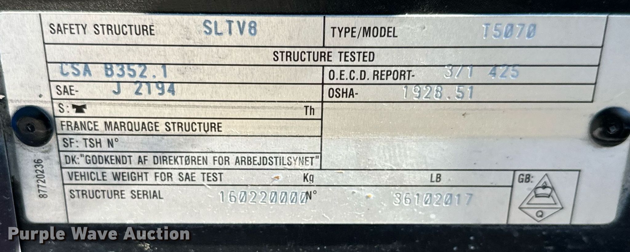2011 New Holland T-5070 MFWD tractor. Hours: 5,018 on meter, Serial: ZBJH15072, KDOT ID: 352-2061. Engine CNH 445TAMLA, Displacement: 4.5L, Cylinders: 4, Fuel type: Diesel, HP: 111. Transmission Synchro, 12F - 12R, Left-hand reverser, Differential lock. Operators station AC, Heat. Features PTO: 1000, Three point Top link, Seven pin outlet, Hydraulic remote sets Rear: 3, Suitcase weights: 10. Tires Front: 380/85R24, Rear: 460/85R34. Notes Warning indicator: Master warning, Dead battery, Roof leak. Kansas Dept. of Transportation. Salina, KS 67401