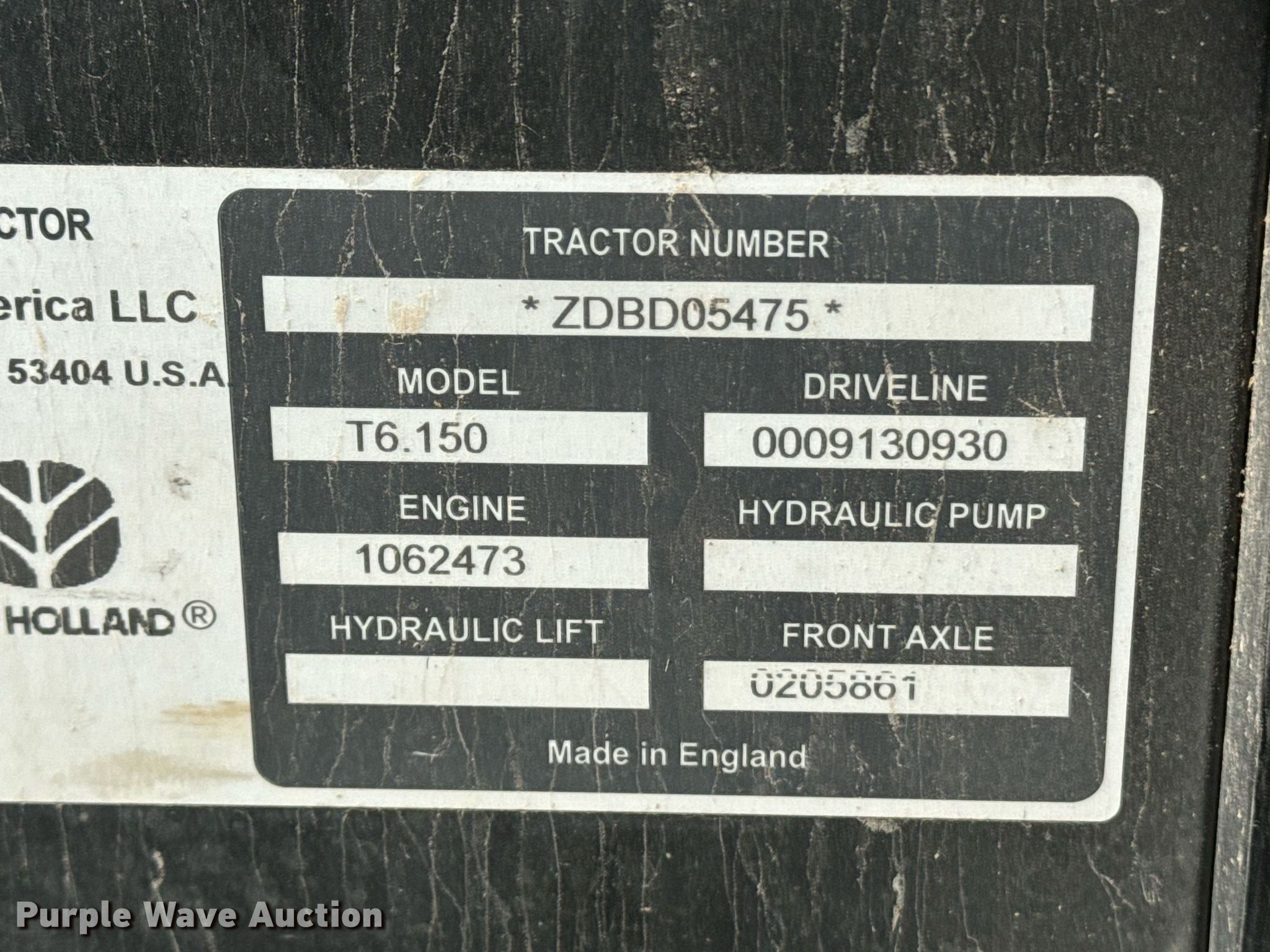 Purple Wave is selling a used Tractor in Kansas. This item is a 2014 New Holland T6.150 MFWD tractor with the following: Hours: 4,863 on meter, Serial: ZDBD05475, KDOT ID: 352-2085