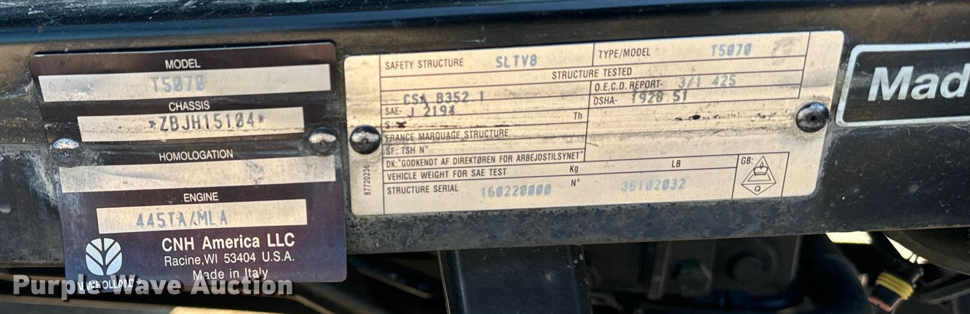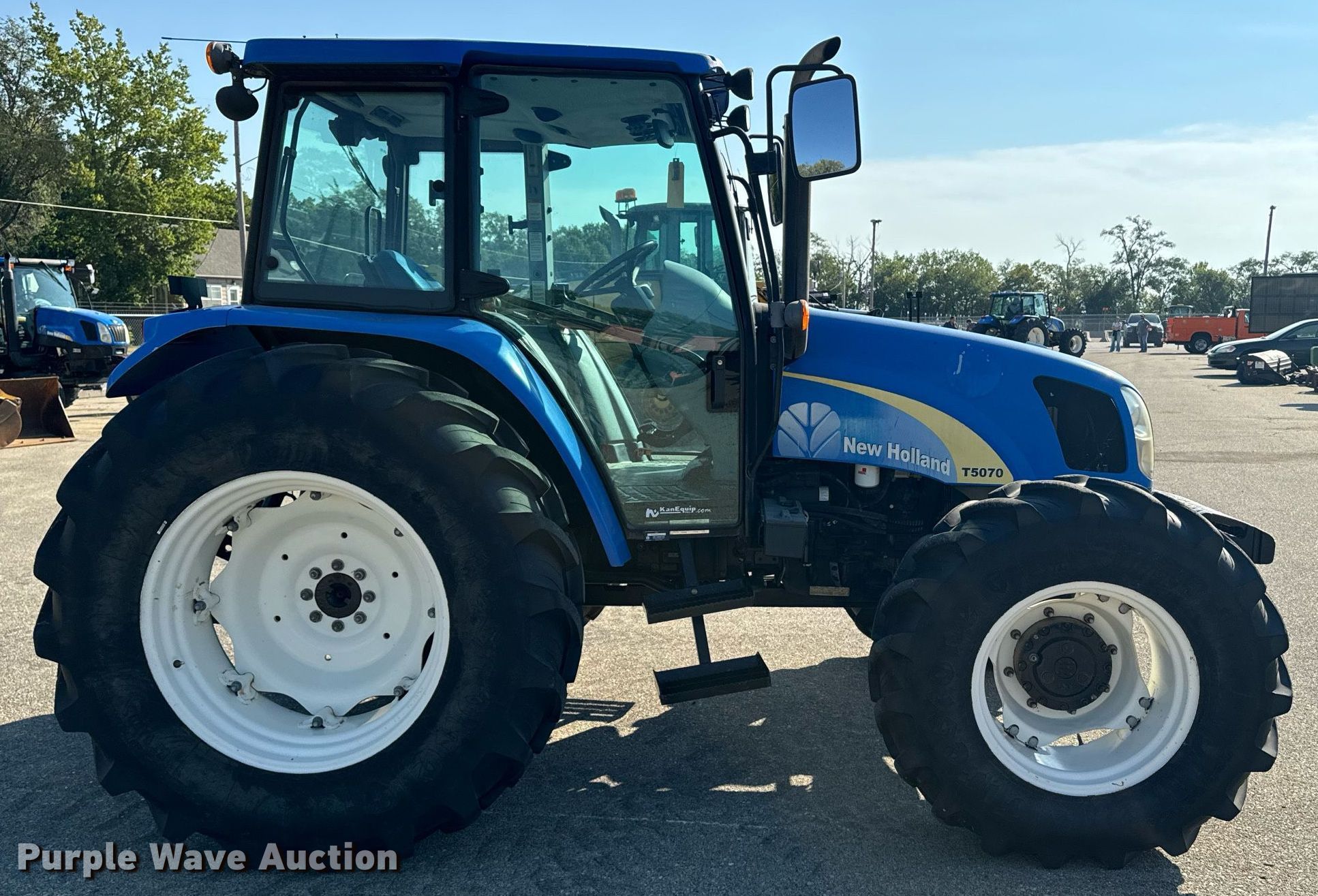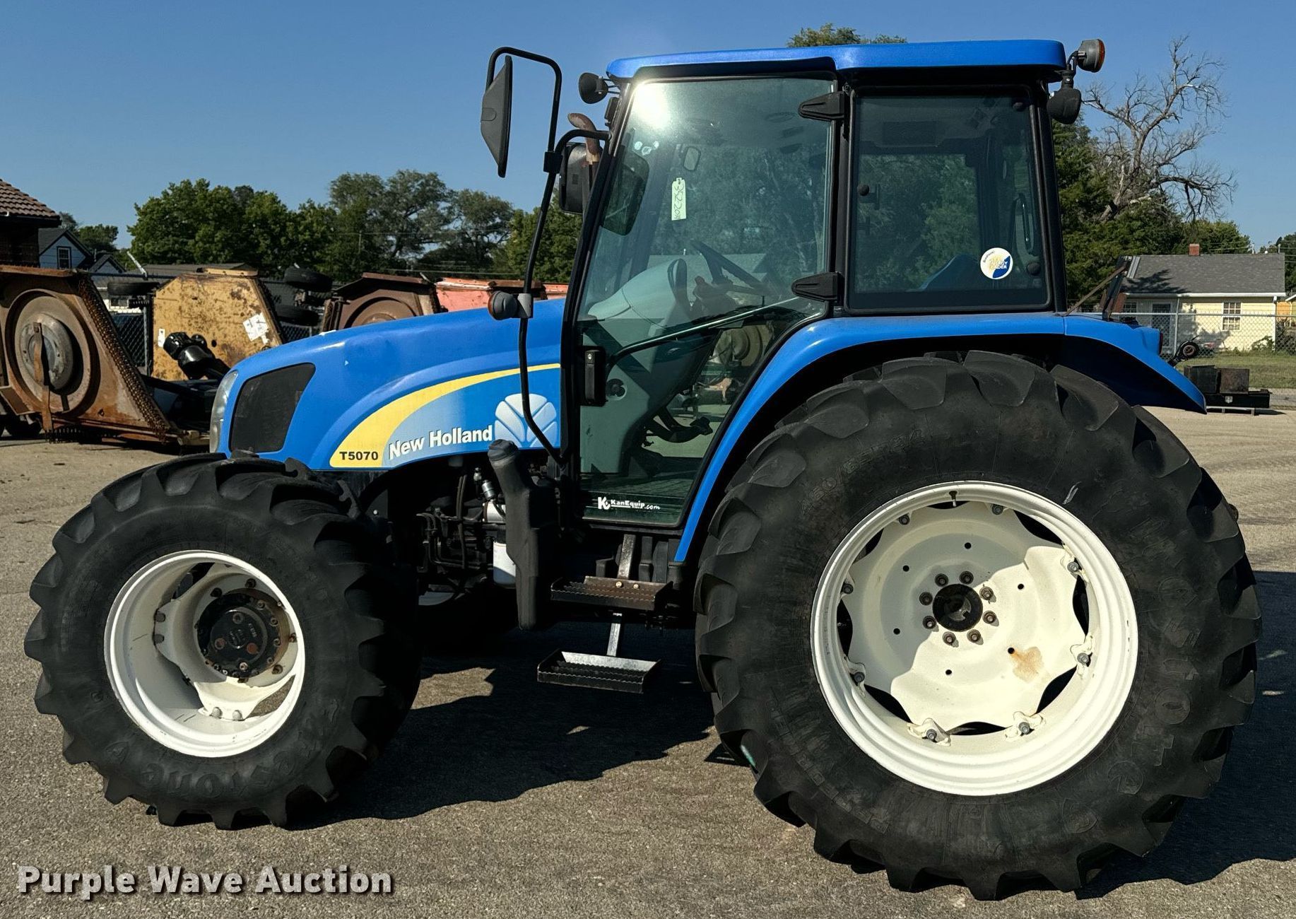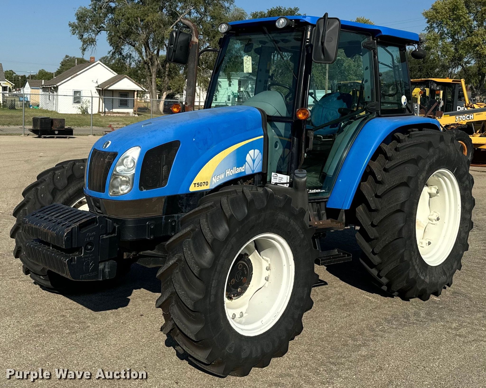 Purple Wave is selling a used Tractor in Kansas. This item is a 2011 New Holland T-5070 MFWD tractor with the following: Hours: 3,213 on meter, Serial: ZBJH15104, KDOT ID: 352-2031