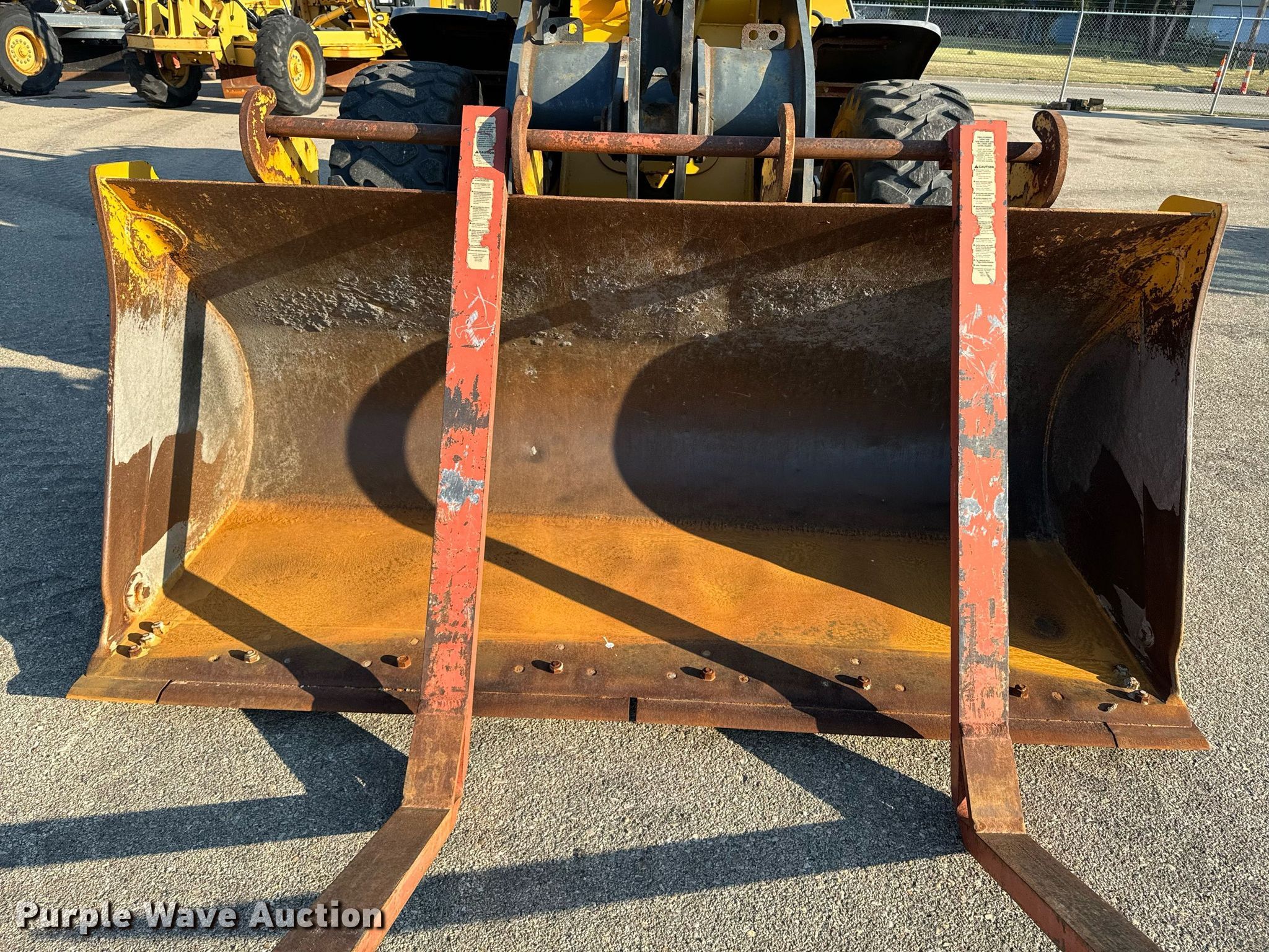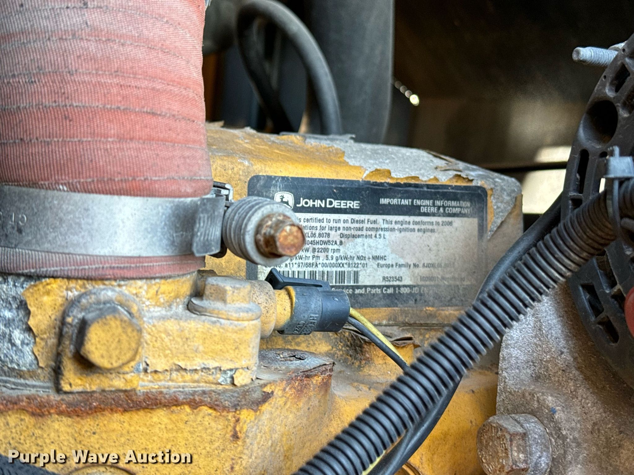 2006 John Deere 444J wheel loader. Hours: 2,547 on meter, Serial: DW444JZ608947, KDOT ID: 365-2066. Engine John Deere, Displacement: 4.5L, Cylinders: 4, Fuel type: Diesel. Transmission Powershift, 4F - 3R. Chassis Differential lock. Operators station Enclosed cab, AC, Heat, Bucket controls: Joystick. Features Bucket Capacity: 2.5 cu.yd., Width: 99", Cutting edge: Bolt-on, Forks Length: 48". Tires Size: 17.5R25. Notes Dead battery, Axle leak, Head liner falling. Kansas Dept. of Transportation. Salina, KS 67401