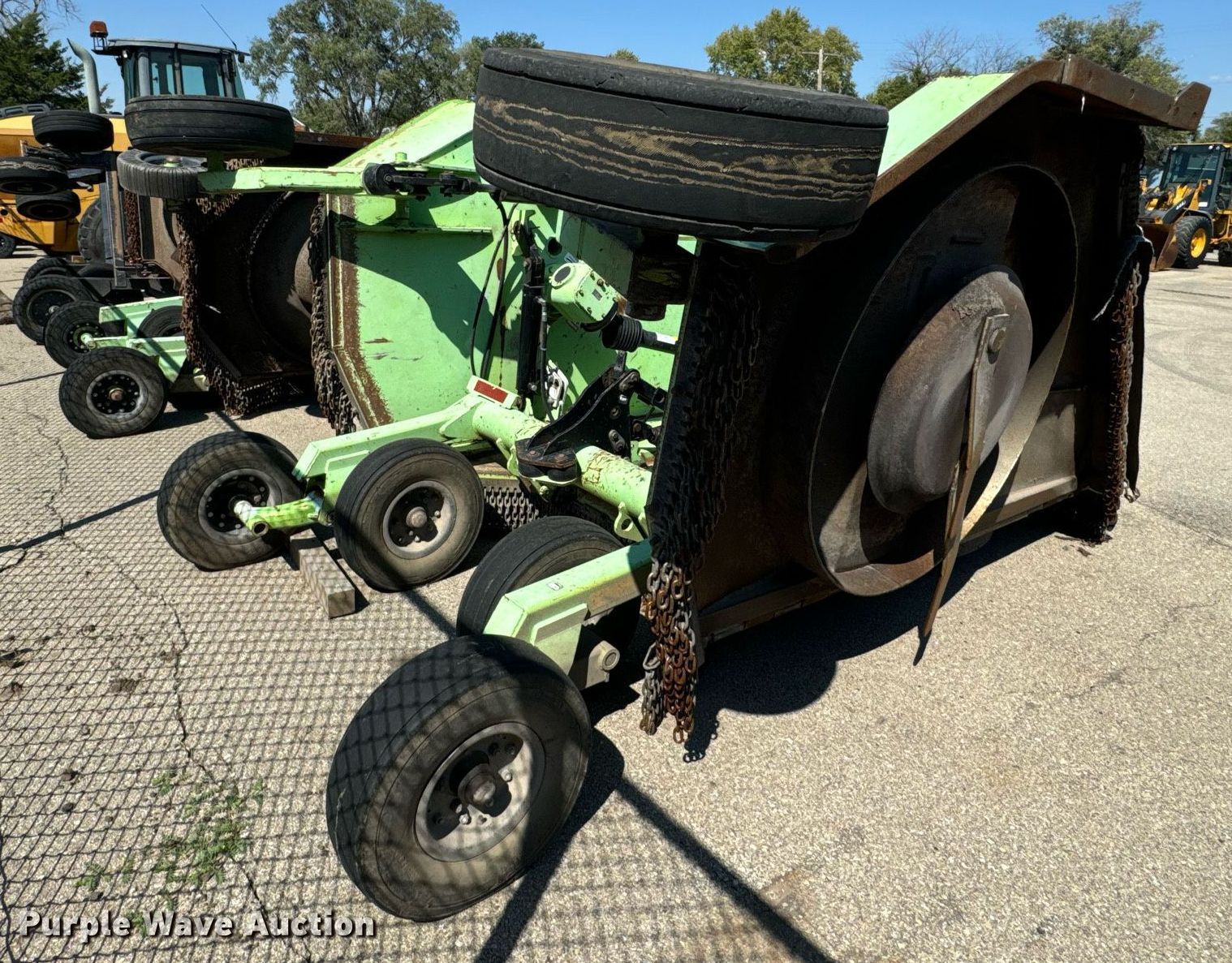 Schulte XH1500 batwing rotary mower. Serial: C30600632903, KDOT ID: 397-2139. Features Width: 15', Hydraulic lift, Hydraulic fold, PTO: 1000. Tires Size: 24x7.7, Solid. Kansas Dept. of Transportation. Salina, KS 67401