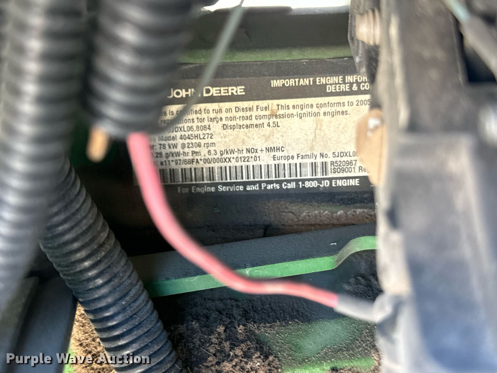 2006 John Deere 6415 tractor. Hours: 1,129 on meter Actual hours unknown, Serial: L06415B457042, KDOT ID: 352-2065. Engine John Deere, Displacement: 4.5L, Cylinders: 4, Fuel type: Diesel. Transmission Synchro, 16F - 16R, Left-hand reverser, Differential lock. Operators station AC, Heat. Features PTO: 540, 1000, Three point Top link, Seven pin outlet, Hydraulic remote sets Rear: 3, Suitcase weights: 8. Tires Front: 11-16, Rear: 480/80R30. Notes Warning indicator: Air filter, Dead battery, Interior damage, Exterior covers missing, Non-operational three point, Hour meter replaced at approximately 4,878 hours. Kansas Dept. of Transportation. Salina, KS 67401