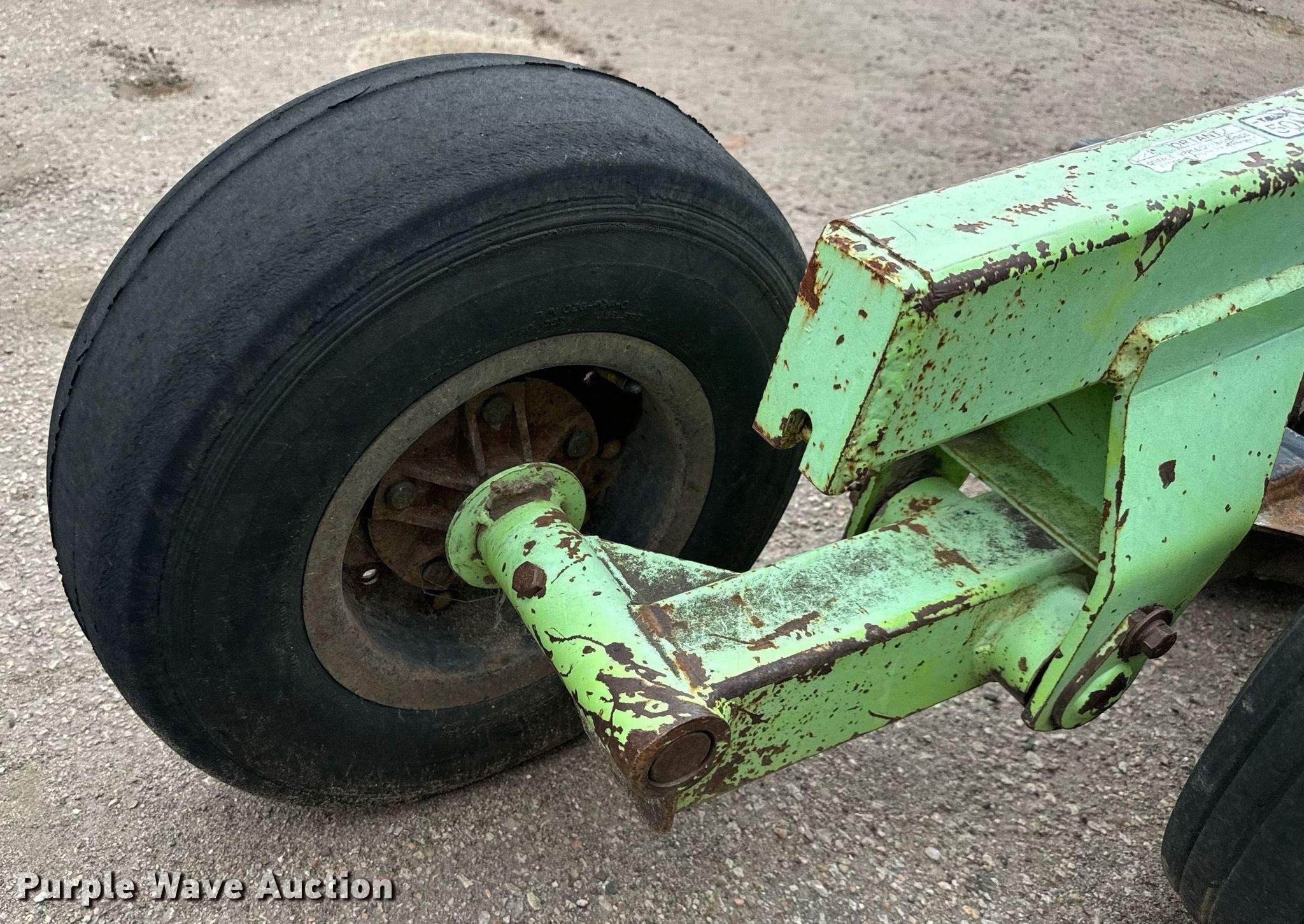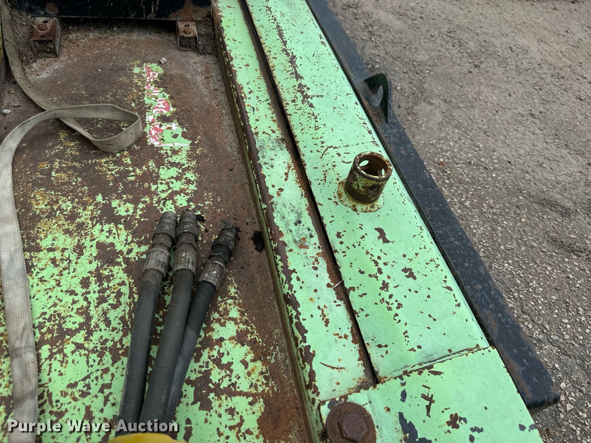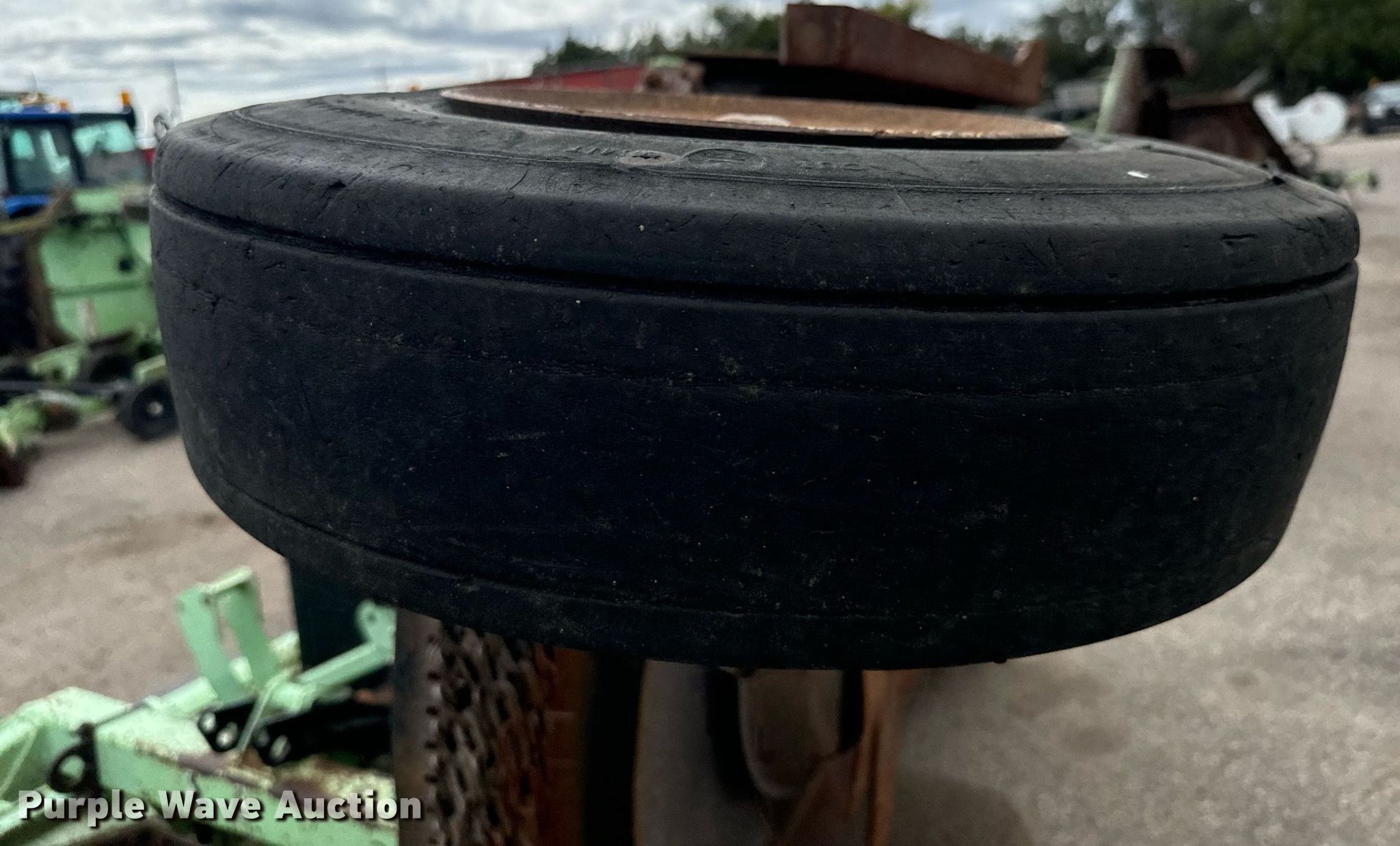 2003 Schulte XH1000 rotary mower. Serial: C30200573303, KDOT ID: 394-5023. Features Width: 10', Hydraulic fold. Tires Size: 22x6.75-10, Solid. Notes Wing cylinder leak, Gearboxes leak, PTO half shaft missing. Kansas Dept. of Transportation-Shop. Hutchinson, KS 67504