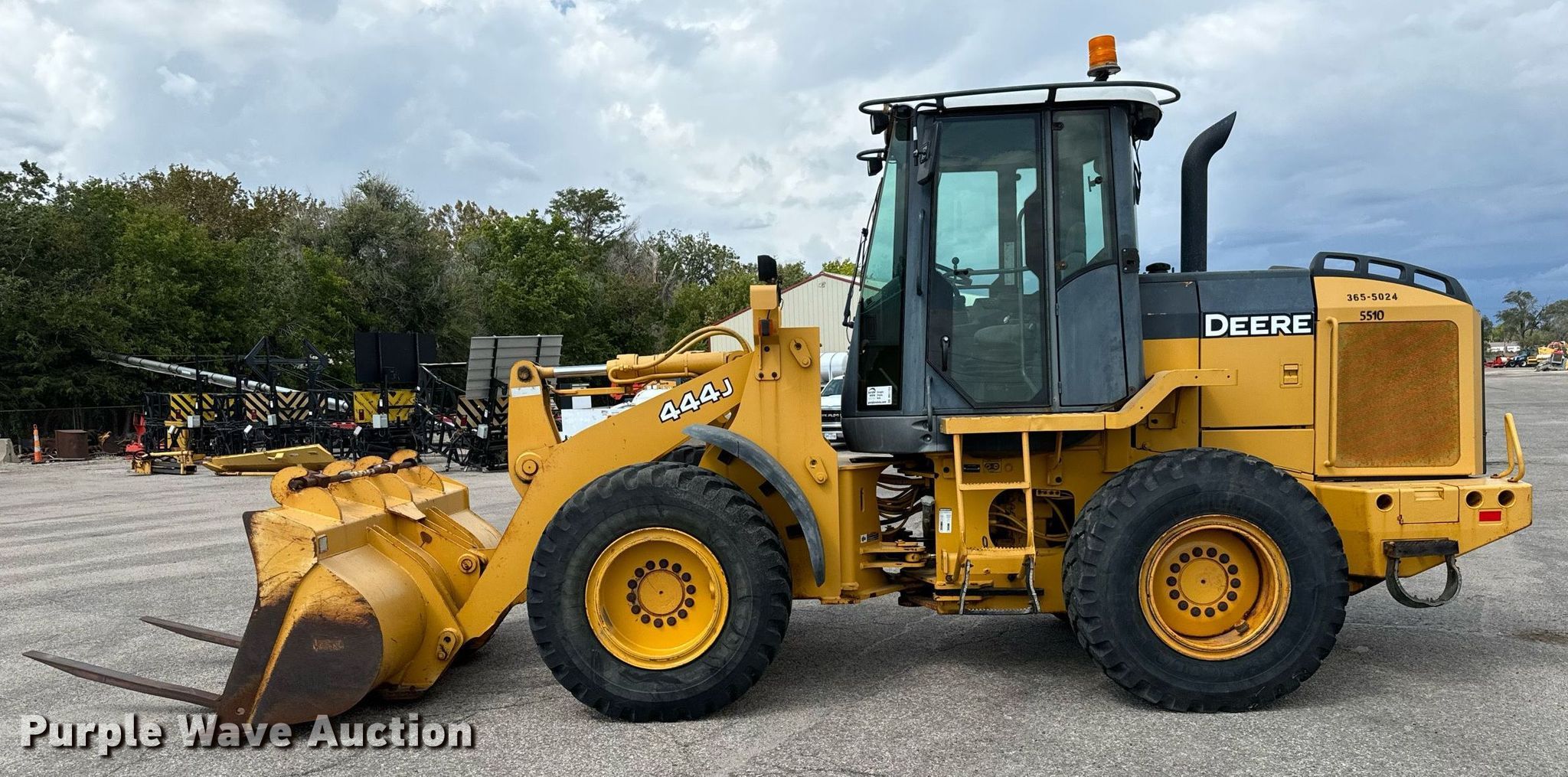 Purple Wave is selling a used Wheel Loader in Kansas. This item is a 2005 John Deere 444J wheel loader with the following: Hours: 7,369 on meter, Serial: DW444JZ594770, KDOT ID: 365-5024