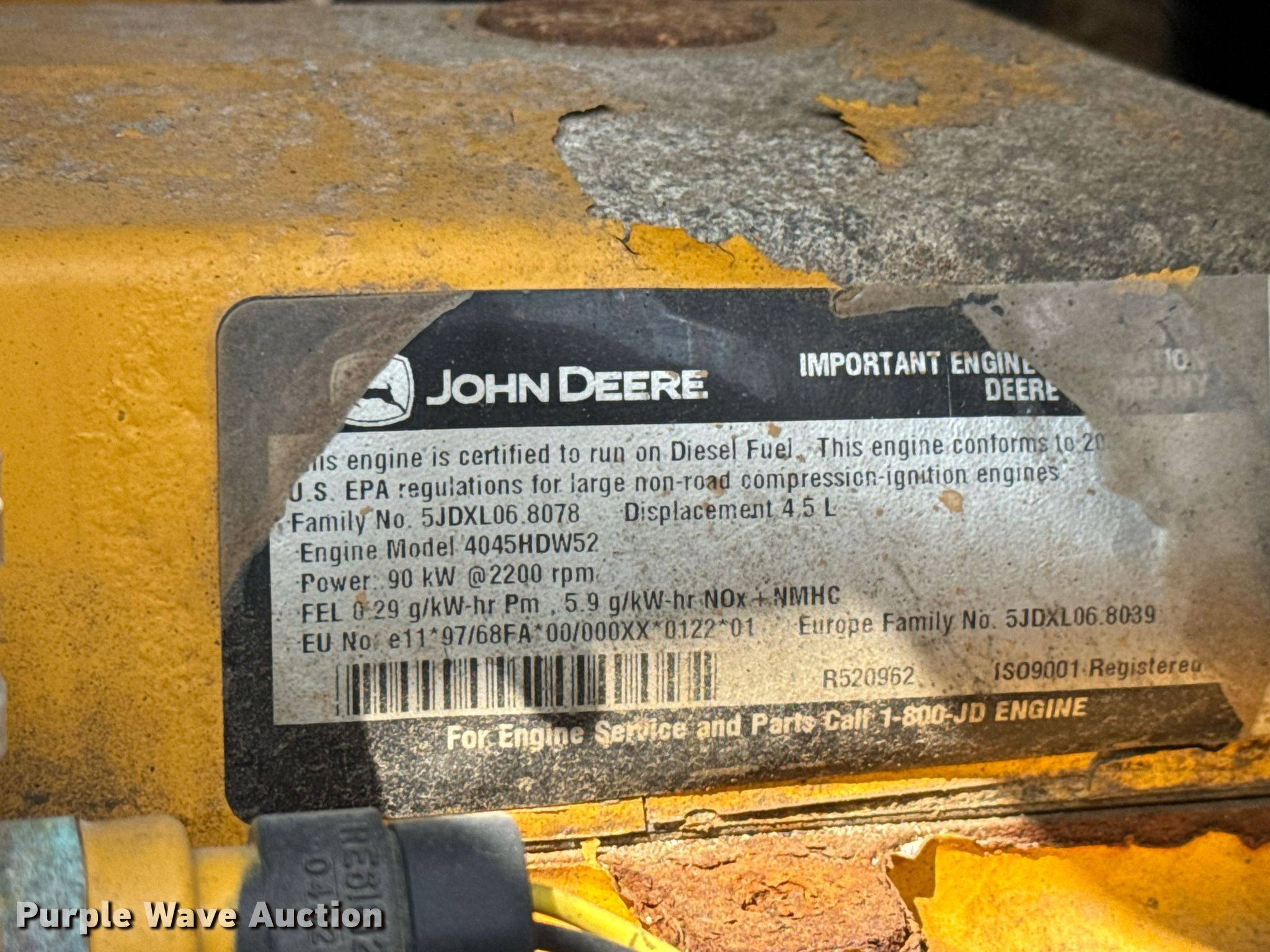 2005 John Deere 444J wheel loader. Hours: 7,369 on meter, Serial: DW444JZ594770, KDOT ID: 365-5024. Engine John Deere 4045H, Cylinders: 4, Fuel type: Diesel. Transmission Powershift, 4F - 3R. Chassis Differential lock. Operators station Enclosed cab, AC, Heat, Bucket controls: Joystick, Ride control. Features Bucket JRB 444J, Capacity: 2.25 cu.yd., Width: 100", Cutting edge: Bolt-on, Forks Length: 46". Tires Size: 17.5R25. Notes Unknown operating condition of AC. Kansas Dept. of Transportation-Shop. Hutchinson, KS 67504