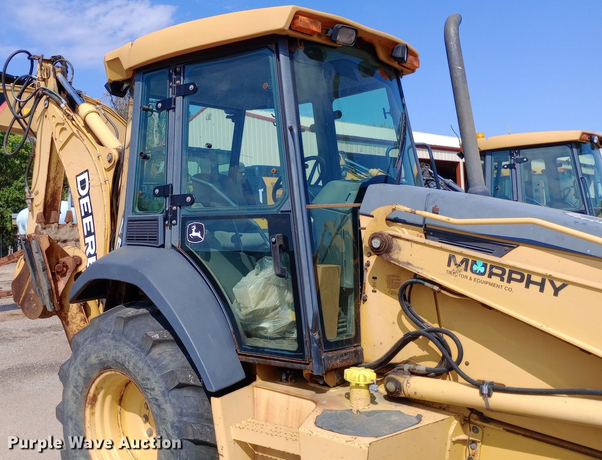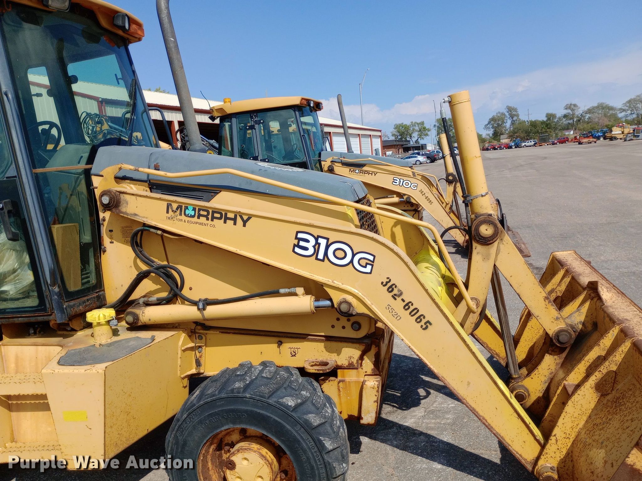 2005 John Deere 310G backhoe. Hours: 3,570 on meter, Serial: T0310GX950205, KDOT ID: 362-6065. Engine John Deere 4045D, Cylinders: 4, Fuel type: Diesel. Transmission Shuttle shift, 4F - 4R. Chassis Four wheel drive, Differential lock. Operators station Enclosed cab, AC, Heat, Backhoe controls: Wobble stick / two stick. Features Loader Bucket Width: 86", Cutting edge: Bolt-on, Backhoe Extendable stick, Bucket Width: 24", Teeth: 5, Breaker Kent KFS, Bit diameter: 2.5", Chisel width: 8", (2) compactors 18", 12".. Tires Front: 12-16.5, Rear: 19.5L-24. Notes Non-operational extendable stick, Loader tilt cylinder leak, Rust damage. Kansas Dept. of Transportation-Shop. Hutchinson, KS 67504
