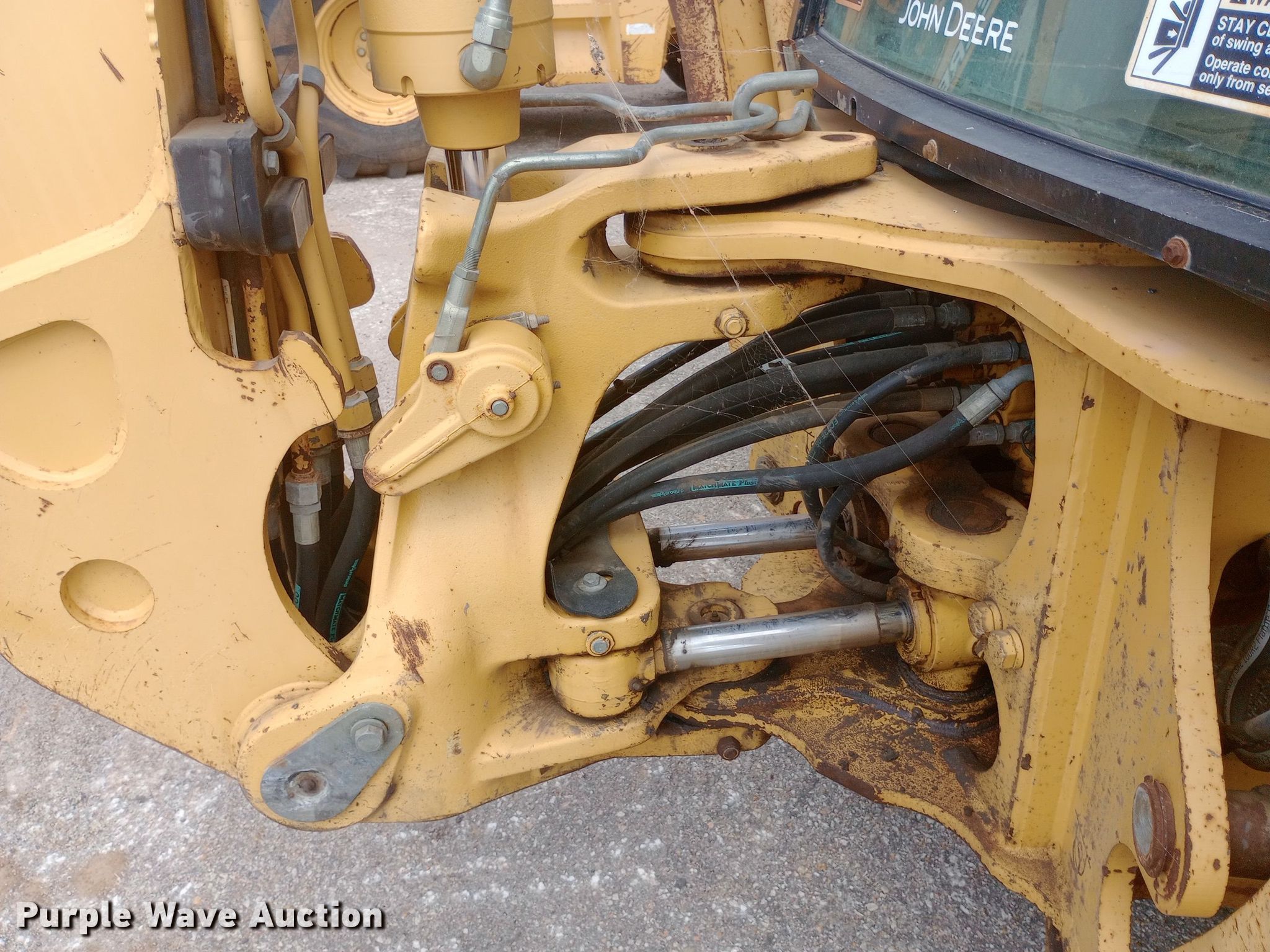 2005 John Deere 310G backhoe. Hours: 3,261 on meter, Serial: T0310GX950189, KDOT ID: 362-6075. Engine John Deere 4045D, Cylinders: 4, Fuel type: Diesel. Transmission Shuttle shift, 4F - 4R. Chassis Four wheel drive, Differential lock. Operators station Enclosed cab, AC, Heat, Backhoe controls: Wobble stick / two stick. Features Loader Bucket Width: 86", Cutting edge: Bolt-on, Backhoe Extendable stick, Auxiliary hydraulics, Bucket Width: 24", Teeth: 5, Breaker Eliminator.. Tires Front: 12-16.5, Rear: 19.5L-24. Notes Rust damage. Kansas Dept. of Transportation-Shop. Hutchinson, KS 67504