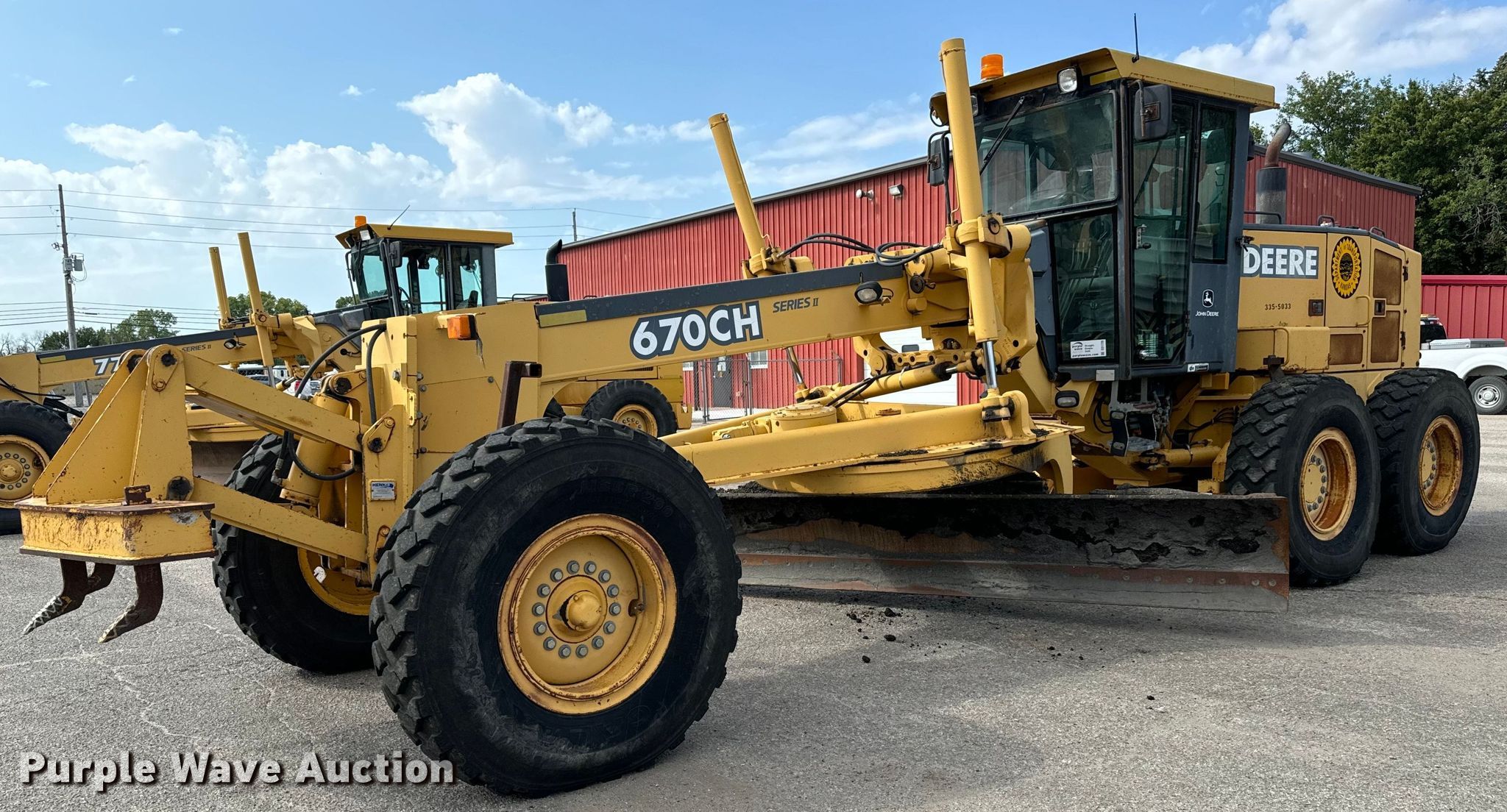 Purple Wave is selling a used Motor Grader in Kansas. This item is a 2004 John Deere 670CH Series II motor grader with the following: Hours: 3,409 on meter, Serial: DW670CH589389, KDOT ID: 335-5033
