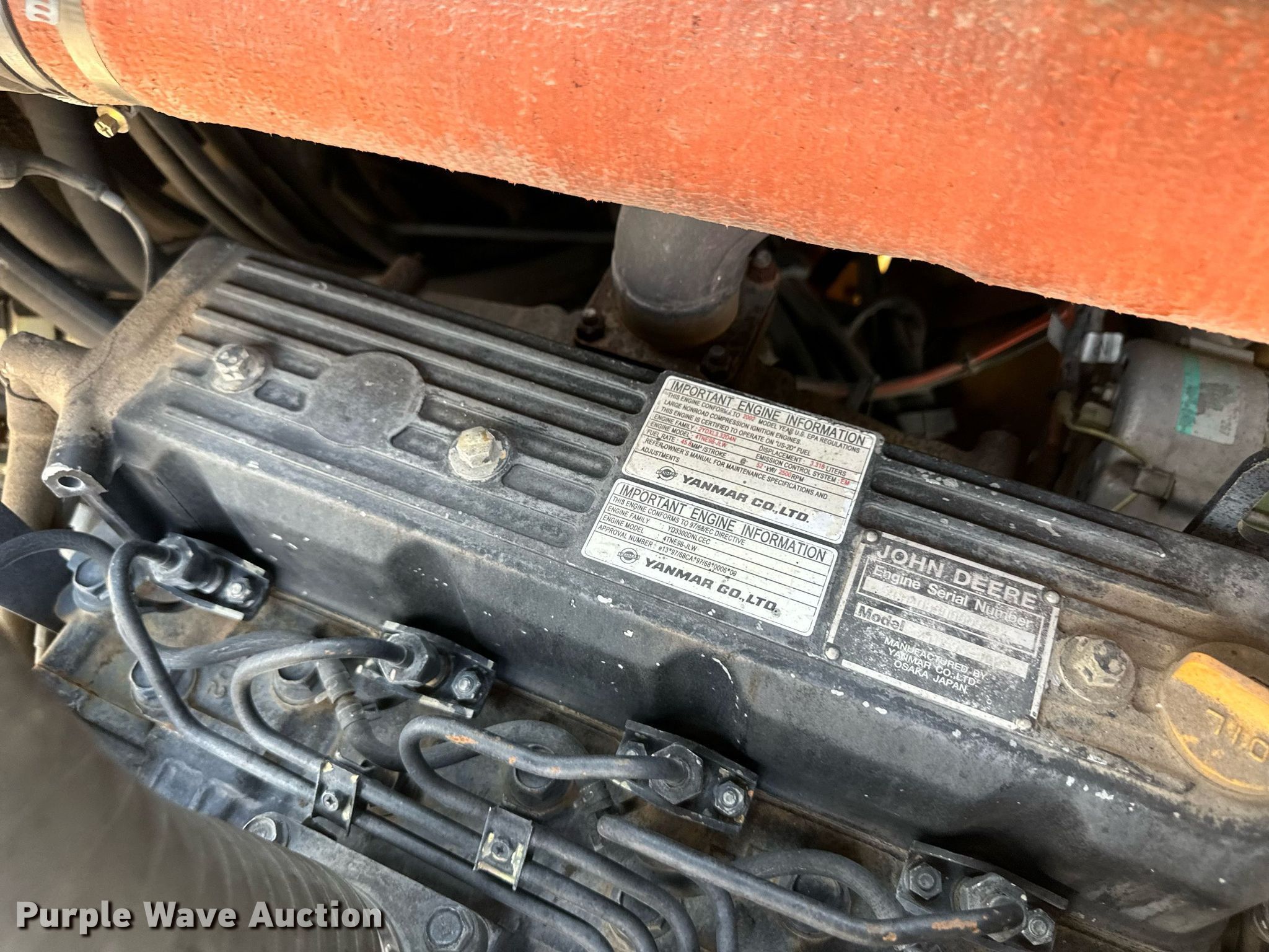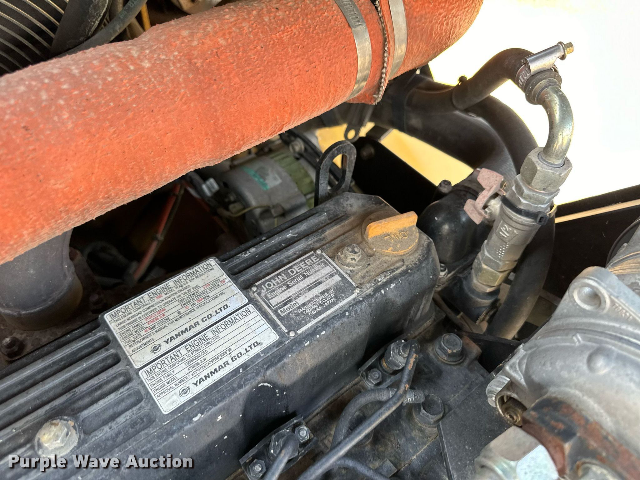2003 John Deere 304H wheel loader. Hours: Unknown Hour meter replaced at 1,656 hours, Serial: LU304HX688982, KDOT ID: 364-3093. Engine Yanmar 4TNE98, Displacement: 3.3L, Cylinders: 4, Fuel type: Diesel. Transmission Hydrostatic, Two speed travel. Operators station Enclosed cab, AC, Heat, Bucket controls: Joystick. Features Auxiliary hydraulics: Front, Quick coupler: Hydraulic, Bucket Width: 82", Self- leveling bucket, Cutting edge: Bolt-on, Forks Length: 48". Tires Size: 405/70R20. Notes Additional cutting edges. Kansas Department of Transportation - Norton. Norton, KS 67654
