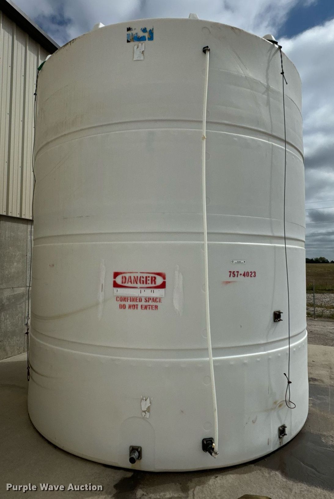 Purple Wave is selling a used Tanks in Kansas. This item is a 2003 Ace salt brine poly storage tank with the following: Capacity: 10,000 gallon, Contents will be removed prior to auction, KDOT ID: 757-4023