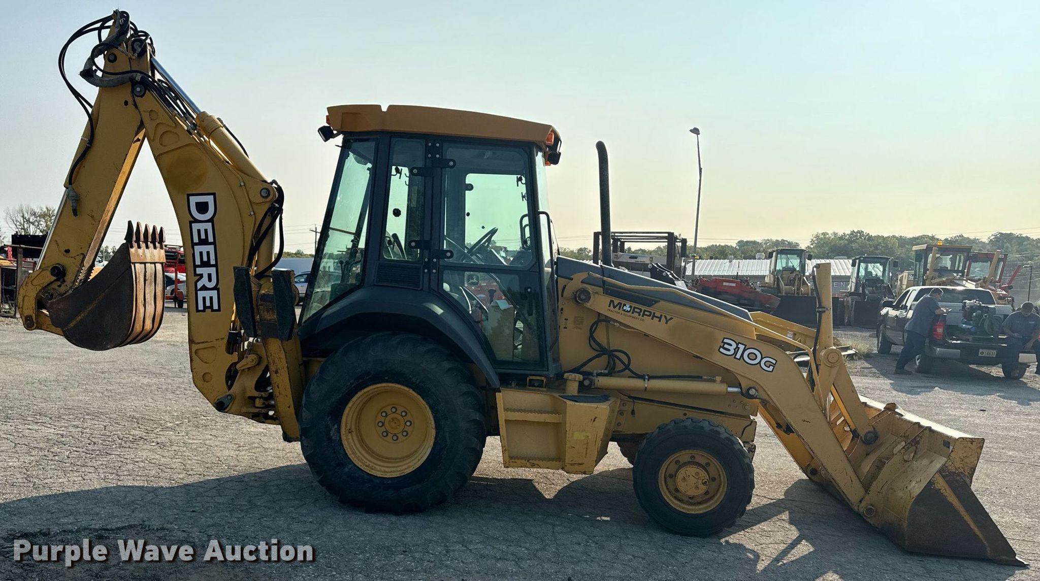 2005 John Deere 310G backhoe. Hours: 3,258 on meter, Serial: TO310GX950363, KDOT ID: 363-1065. Engine John Deere 4045TT088, Displacement: 4.5L, Cylinders: 4, Fuel type: Diesel. Transmission Shuttle shift, 4F - 4R. Chassis Four wheel drive, Differential lock. Operators station Enclosed cab, AC, Heat, Backhoe controls: Wobble stick / two stick. Features Loader Bucket John Deere, Capacity: 1 cu.yd., Width: 85", Cutting edge: Bolt-on, Backhoe Extendable stick, Auxiliary hydraulics, Bucket Width: 24", Teeth: 5.. Tires Front: 12-16.5, Rear: 19.5-24. Notes Intermittent auxiliary hydraulic foot pedal issues. Kansas Department of Transportation - Topeka. Topeka, KS 66612