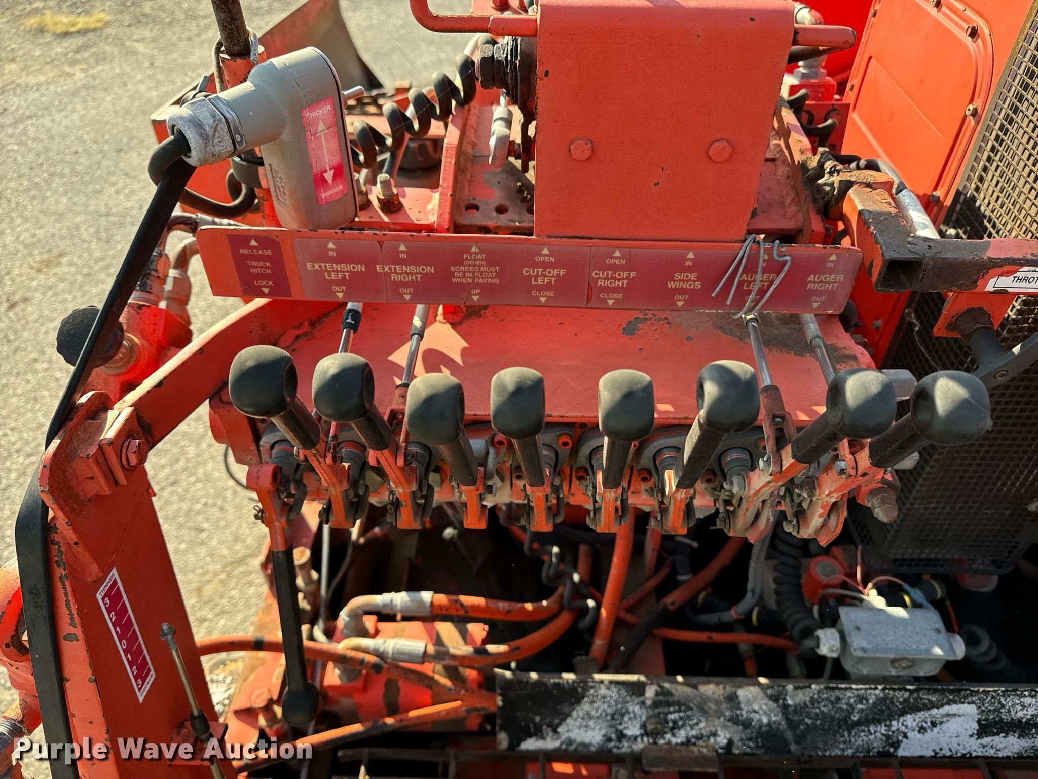 2000 LeeBoy 8500T paver. Hours: 2,486 on meter, Serial: 8500T-2154, KDOT ID: 598-1020. Engine Hatz, Cylinders: 4, Fuel type: Diesel. Transmission Hydrostatic. Features Screed, Paving width: 8' to 15', Extensions Quantity: 2, Screed heater: Propane, Material conveyor Width: 77", Truck hitch, Grade and slope controls. Tracks Width: 12", Steel. Kansas Department of Transportation - Topeka. Topeka, KS 66612