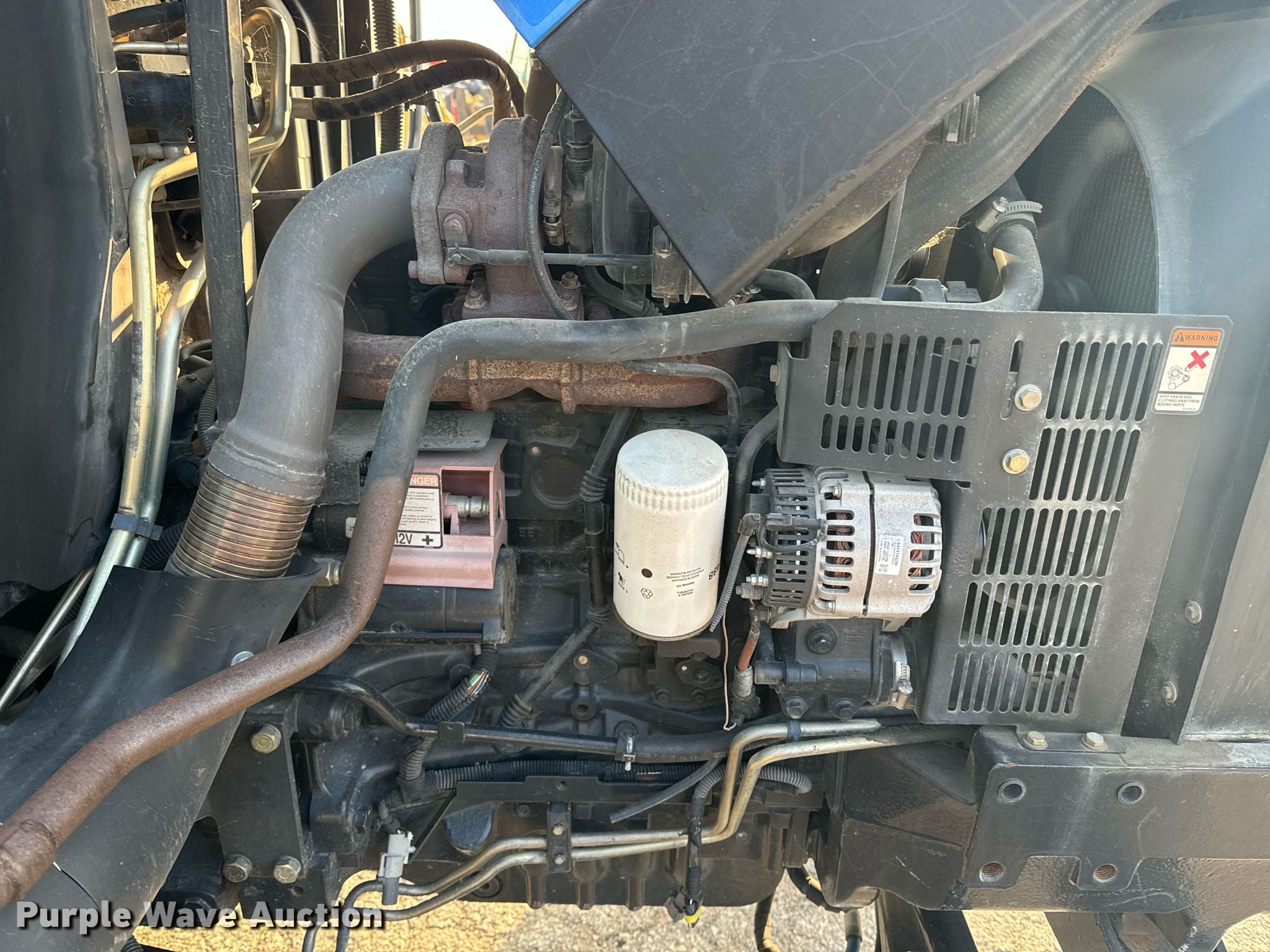 2009 New Holland T6020 tractor. Hours: 5,154 on meter, Serial: Z8BD20919, KDOT ID: 352-1039. Engine Displacement: 4.5L, Cylinders: 4, Fuel type: Diesel, HP: 110. Transmission Dual Command, 24F - 24R, Left-hand reverser, Differential lock. Operators station AC, Heat. Features PTO: 1000, Three point Top link, Seven pin outlet, Hydraulic remote sets Rear: 3. Tires Front: 11.00-16 Foam filled, Rear: 460/85R30. Notes Engine issues, Three point issues, sticks. Kansas Department of Transportation - Topeka. Topeka, KS 66612