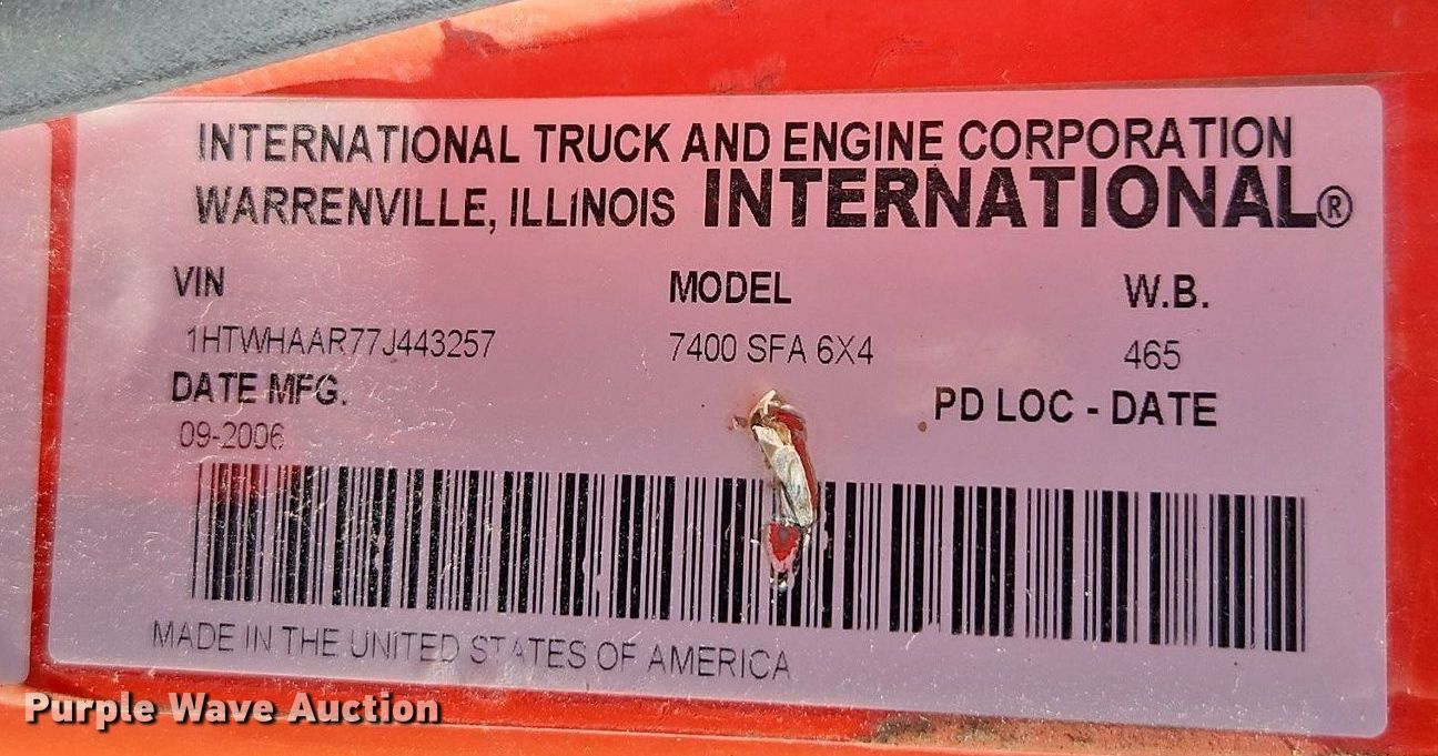 Purple Wave is selling a used Construction Dump Truck in Kansas. This item is a 2007 International 7400 dump truck with the following: Miles: 214,210 on odometer, Hours: 10,580 on meter, VIN: 1HTWHAAR77J443257, KDOT ID: 264-4057