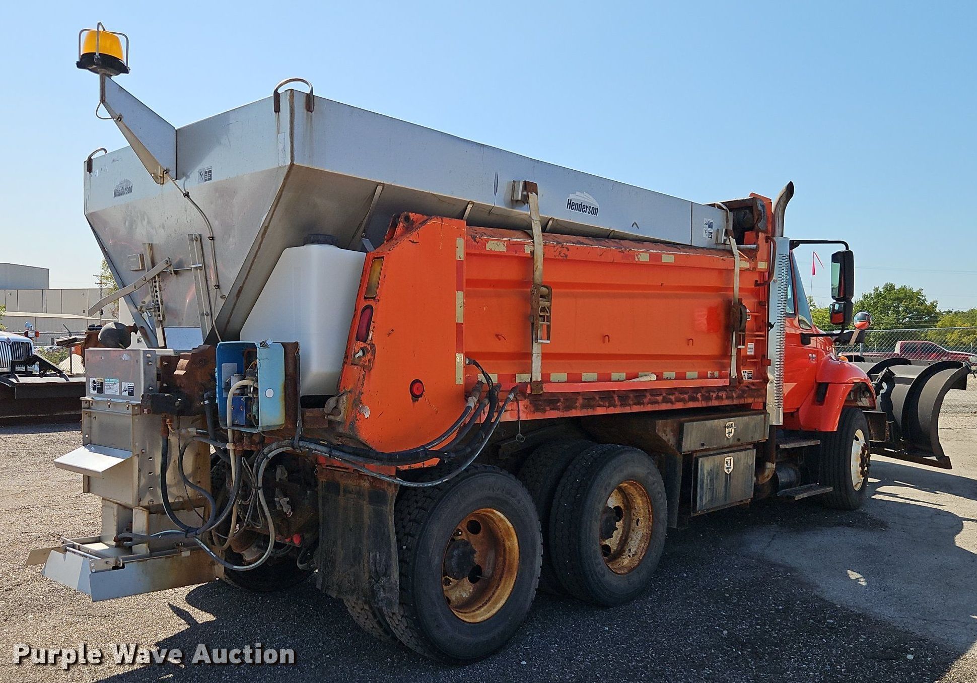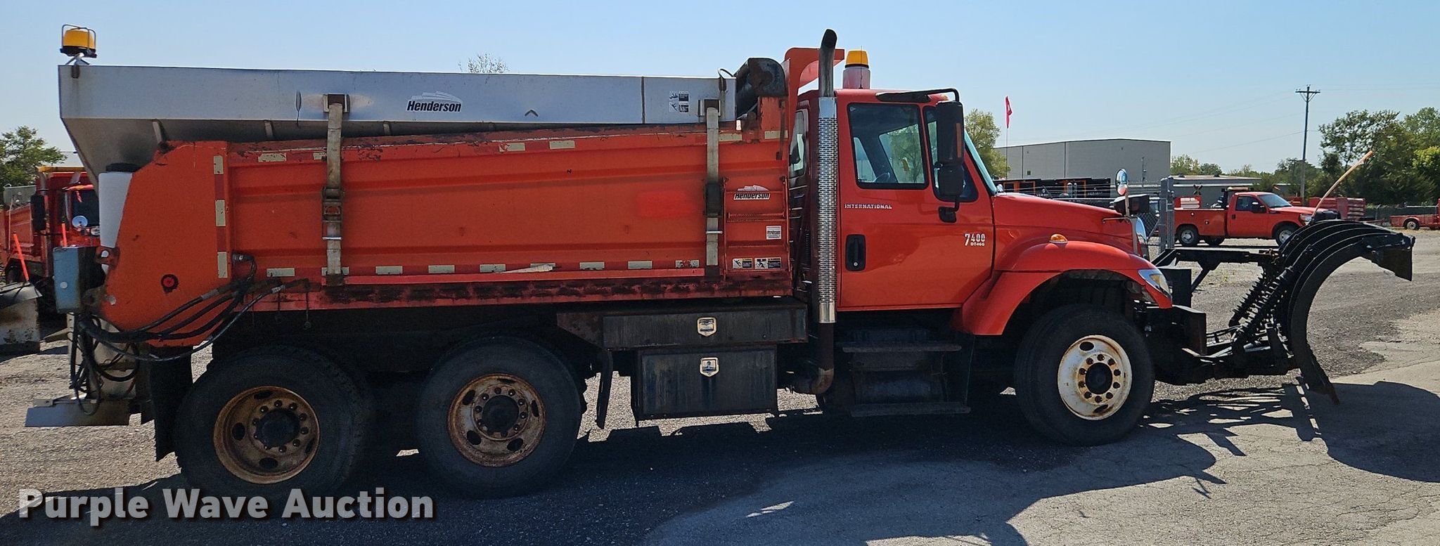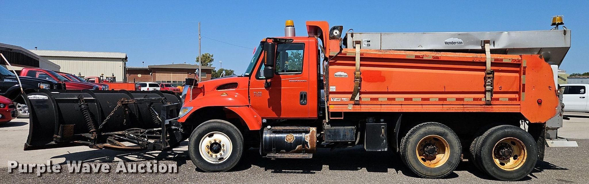 2005 International 7400 dump truck. Miles: 183,327 on odometer, Hours: 11,810 on meter, VIN: 1HTWHAAR65J139043, KDOT ID: 264-4114. Engine International DT466, Displacement: 7.6L, Cylinders: 6, Fuel type: Diesel. Transmission Allison, Automatic. Chassis Axles: Tandem, Differential lock: Inter-axle, Suspension: Spring over walking beam, Brakes: Air, PTO, Front mount PTO. Interior AC, Heat, Heated mirrors, Cruise control, Brake controller. Features Dump bed Henderson, 13' L x 96" W, Side height: 38", Bed type: Steel, Ram: Single, End gate: Air operated, Spreader Henderson, Plow Henderson, Width: 132". Tires Size: 295/75R22.5. Notes Dead battery, Injectors issues, stick when cold, Alternator issues, needs replaced. Titles will be distributed after confirmation of payment and removal. Kansas title. Kansas Dept. of Transportation - Chanute. Chanute, KS 66720