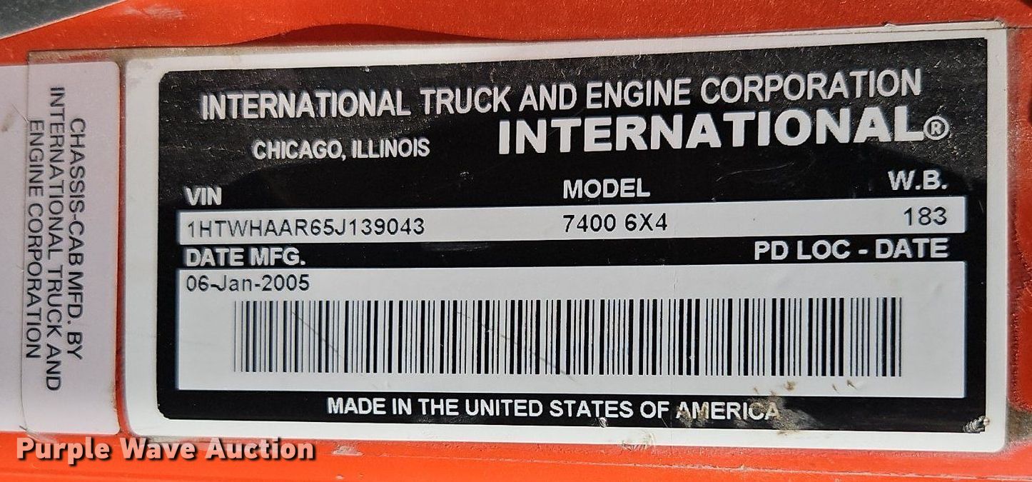 Purple Wave is selling a used Construction Dump Truck in Kansas. This item is a 2005 International 7400 dump truck with the following: Miles: 183,327 on odometer, Hours: 11,810 on meter, VIN: 1HTWHAAR65J139043, KDOT ID: 264-4114