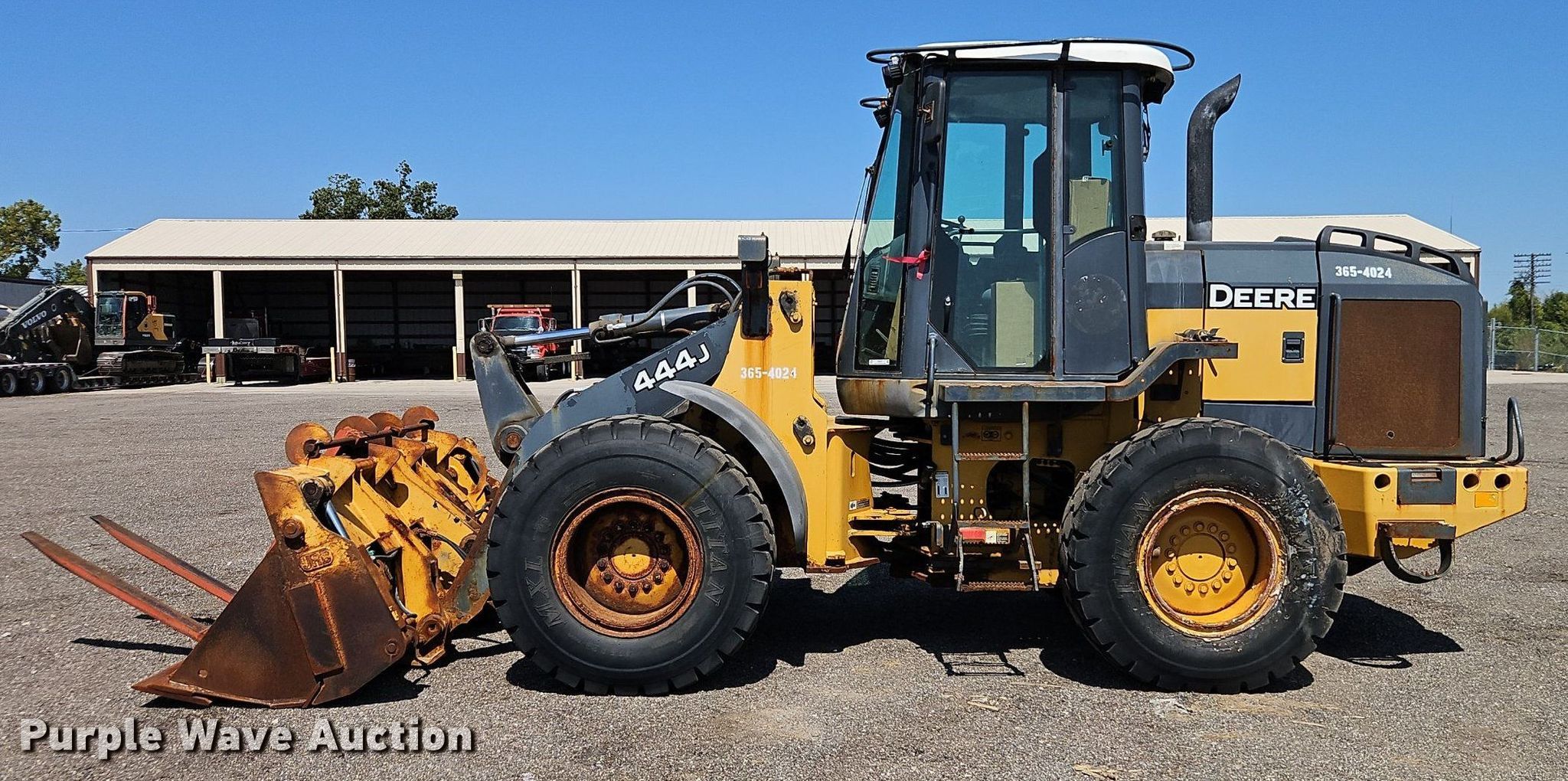 Purple Wave is selling a used Wheel Loader in Kansas. This item is a 2004 John Deere 444J wheel loader with the following: Hours: 4,128 on meter, Serial: DW444JZ594688, KDOT ID: 365-4024