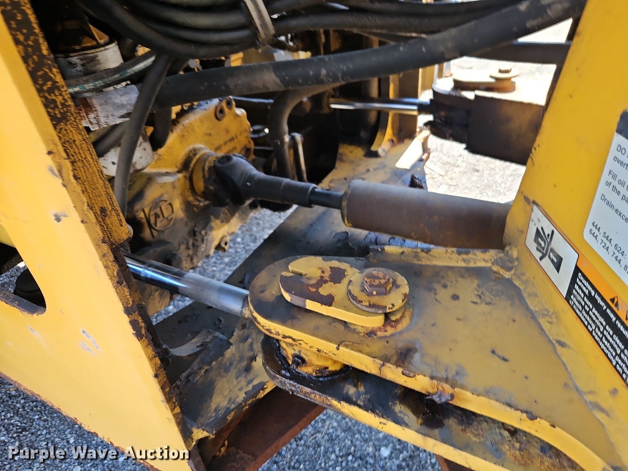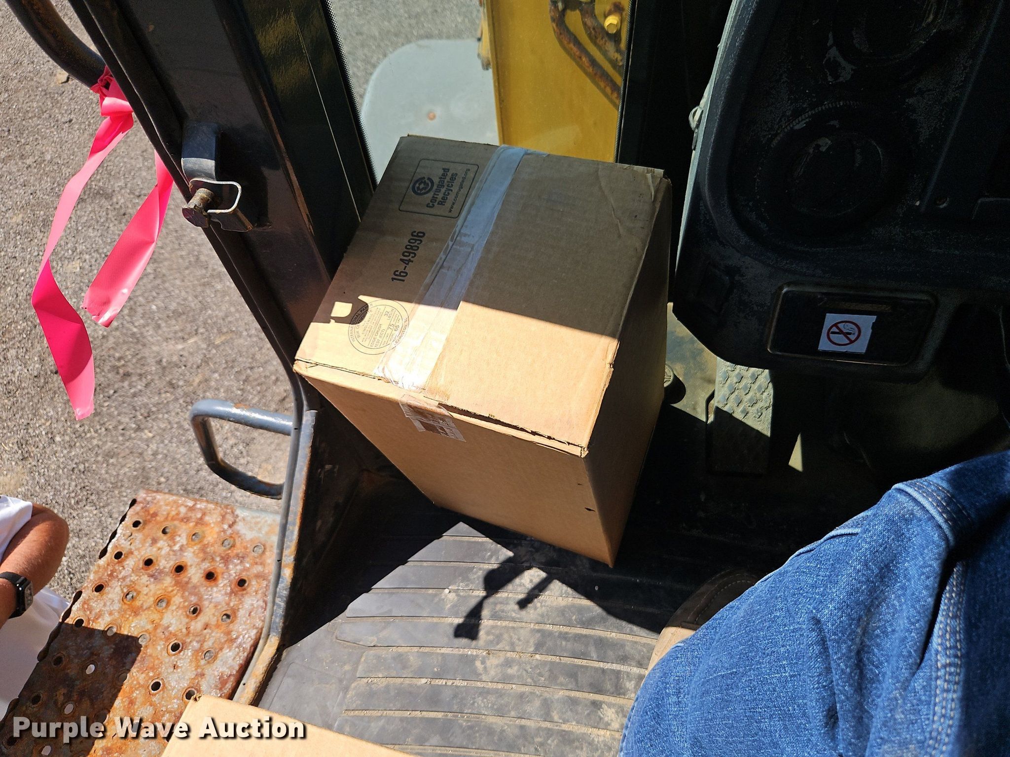 2004 John Deere 444J wheel loader. Hours: 4,128 on meter, Serial: DW444JZ594688, KDOT ID: 365-4024. Engine John Deere, Displacement: 4.5L, Cylinders: 4, Fuel type: Diesel. Transmission Powershift, 4F - 3R. Operators station Enclosed cab, AC, Heat, Bucket controls: Joystick, Ride control. Features Auxiliary hydraulics: Front, Bucket Capacity: 2 cu.yd., Width: 100", Four-in-one, Cutting edge: Bolt-on, Forks Length: 48". Tires Size: 17.5R25. Kansas Dept. of Transportation - Chanute. Chanute, KS 66720