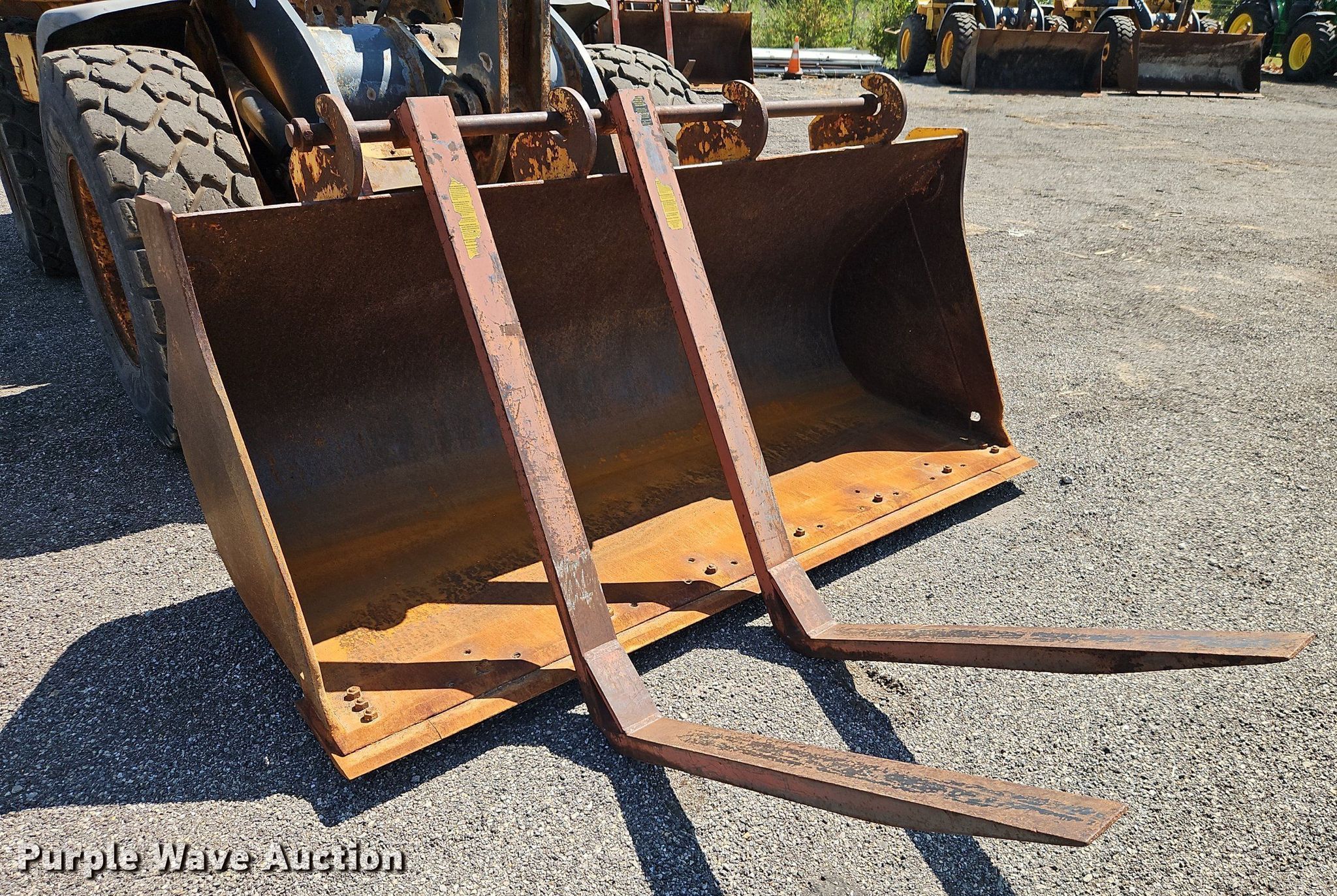 2006 John Deere 444J wheel loader. Hours: 6,548 on meter, Serial: DW444JZ608043, KDOT ID: 365-4036. Engine John Deere, Displacement: 4.5L, Cylinders: 4, Fuel type: Diesel. Transmission Powershift, 4F - 3R. Operators station Enclosed cab, AC, Heat, Bucket controls: Joystick, Ride control. Features Bucket Capacity: 2.25 cu.yd., Width: 100", Cutting edge: Bolt-on, Forks Length: 48". Tires Size: 17.5R25. Kansas Dept. of Transportation - Chanute. Chanute, KS 66720