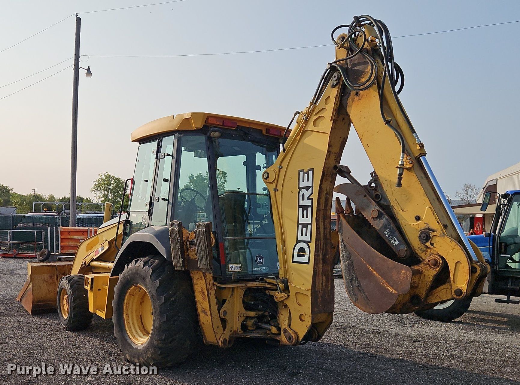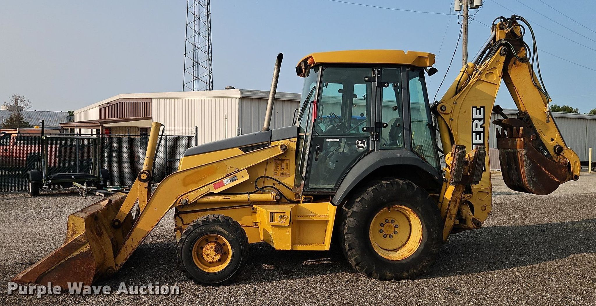 2005 John Deere 310G backhoe. Hours: 4,803 on meter, Serial: T0310GX950382, KDOT ID: 362-4035. Engine Cylinders: 4, Fuel type: Diesel. Transmission Shuttle shift, 4F - 4R. Chassis Four wheel drive. Operators station Enclosed cab, AC, Heat, Backhoe controls: Wobble stick / two stick. Features Loader Bucket Width: 86", Cutting edge: Bolt-on, Backhoe Extendable stick, Thumb: Manual, Auxiliary hydraulics, Bucket Width: 24", Teeth: 5, Breaker Kent K5. Tires Front: 12x16.5, Rear: 19.5L-24. Kansas Dept. of Transportation - Chanute. Chanute, KS 66720