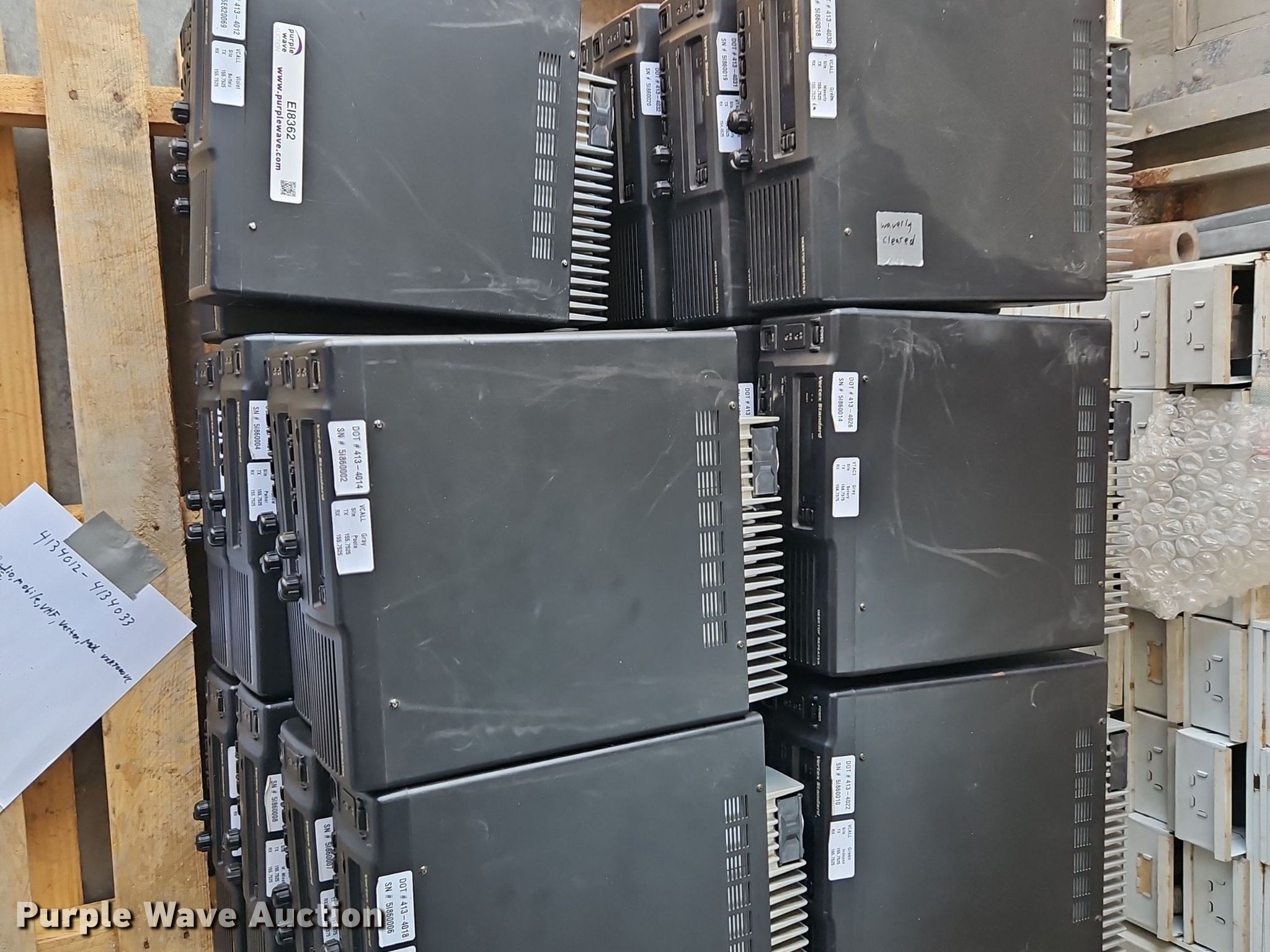 Purple Wave is selling a used Electronics in Kansas. This item is a (22) Vertex Standard VXR-7000V radios with the following: KDOT ID: 4134012, 4134013, 4134014, 4134015, 4134016, 4134017, 4134018,4134019, 4134020, 4134021, 4134022, 4134023, 4134024,,4134025, 4134026, 4134027, 4134028, 4134029, 4134030, 4134031, 4134032, 4134033