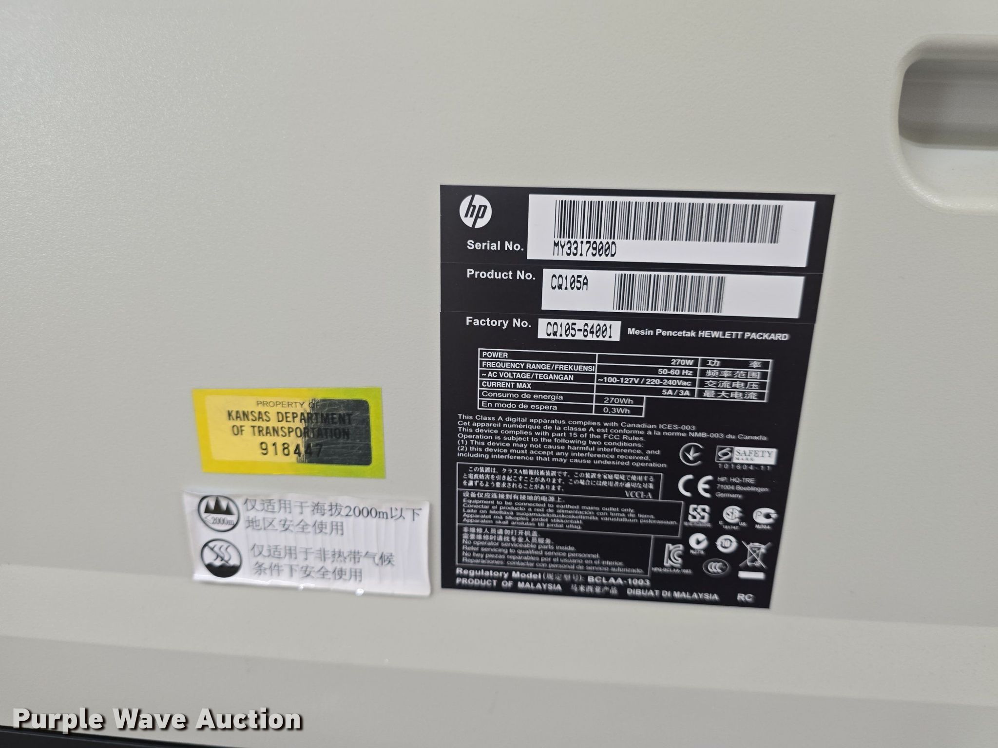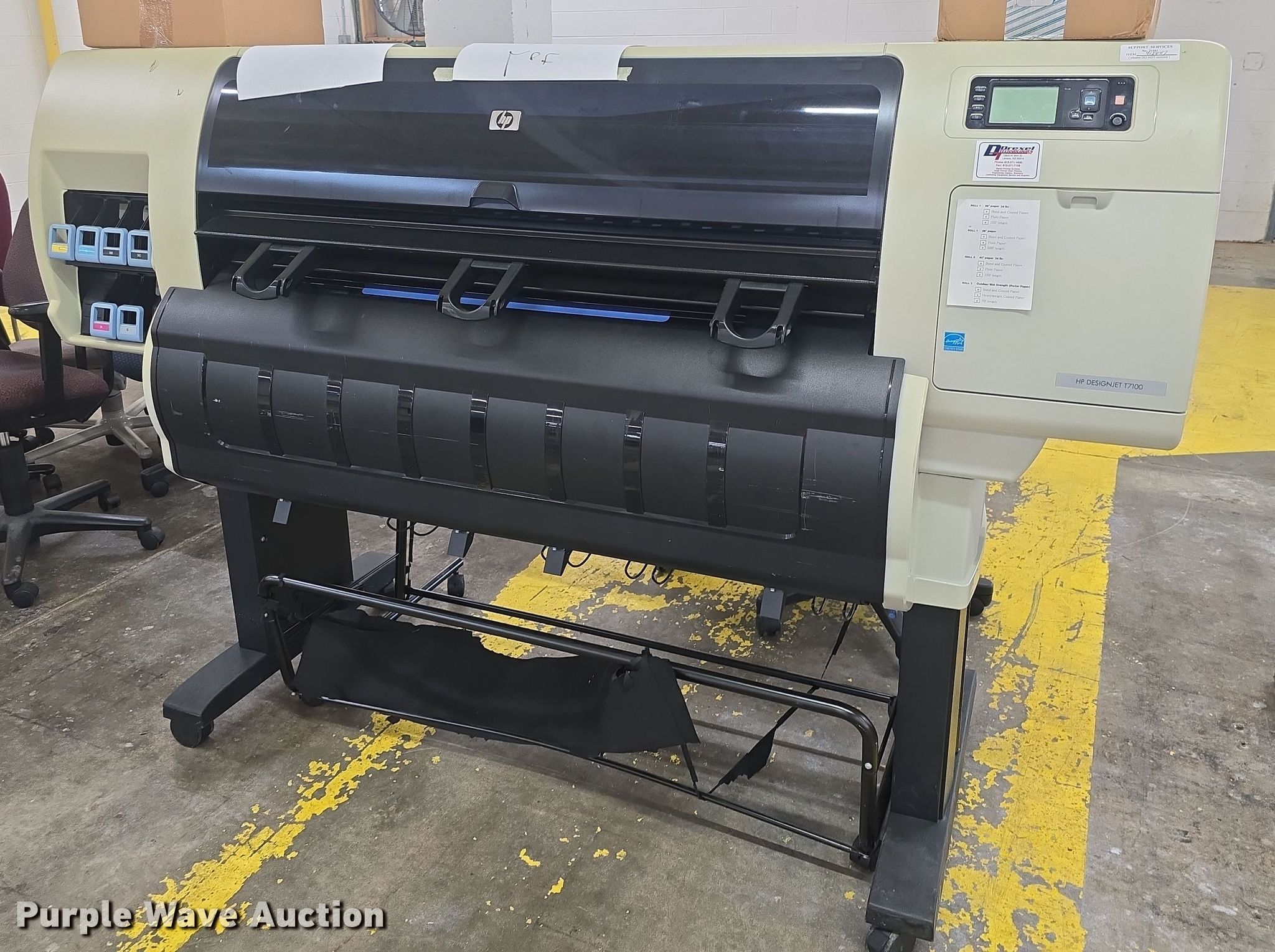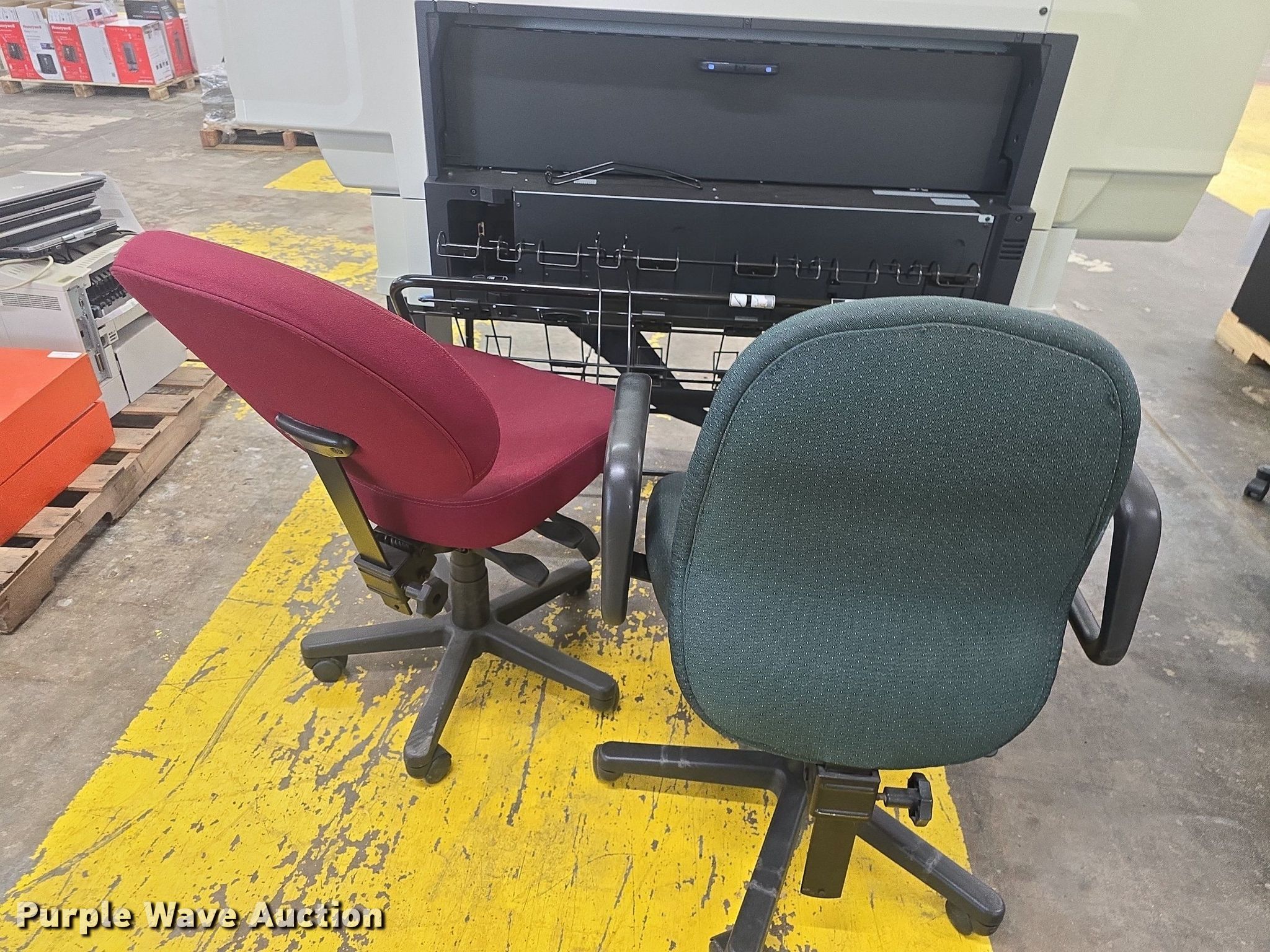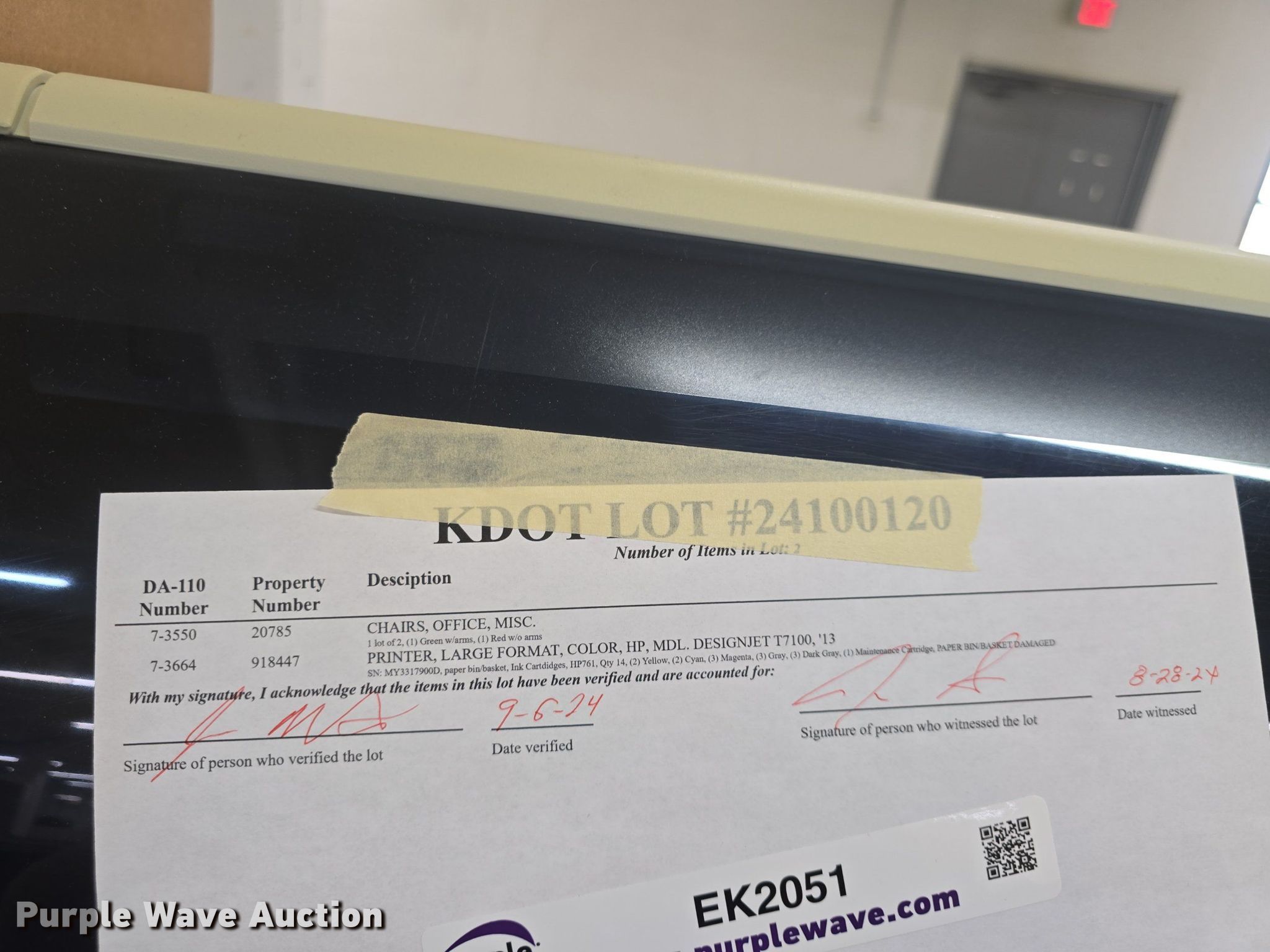 Purple Wave is selling a used Office Supplies and Equip. in Kansas. This item is a Office supplies with the following: (2) chairs, HP large format printer, KDOT ID: 24100120