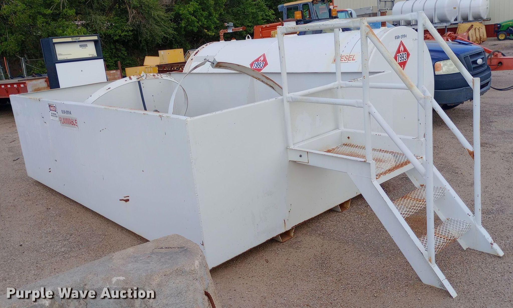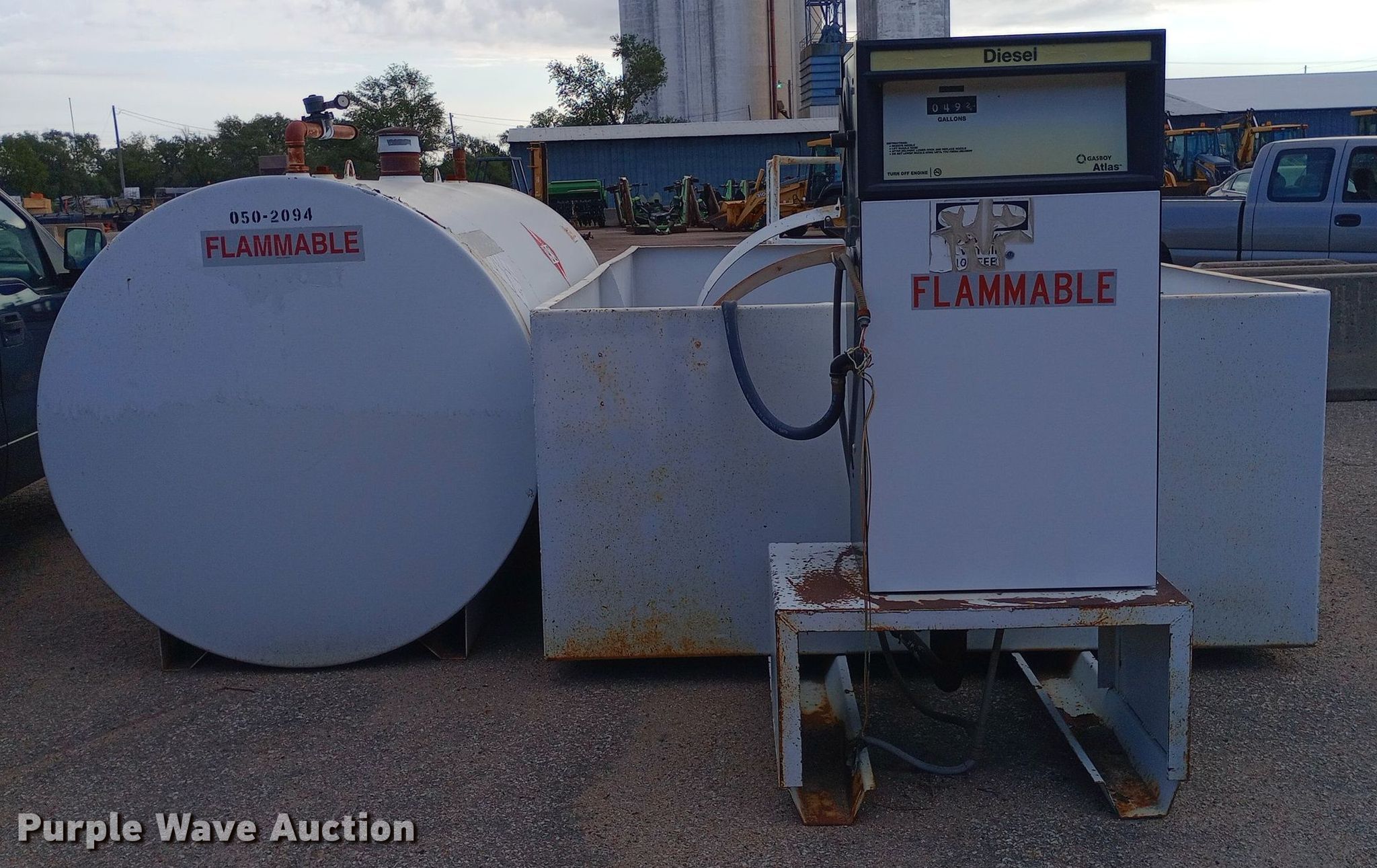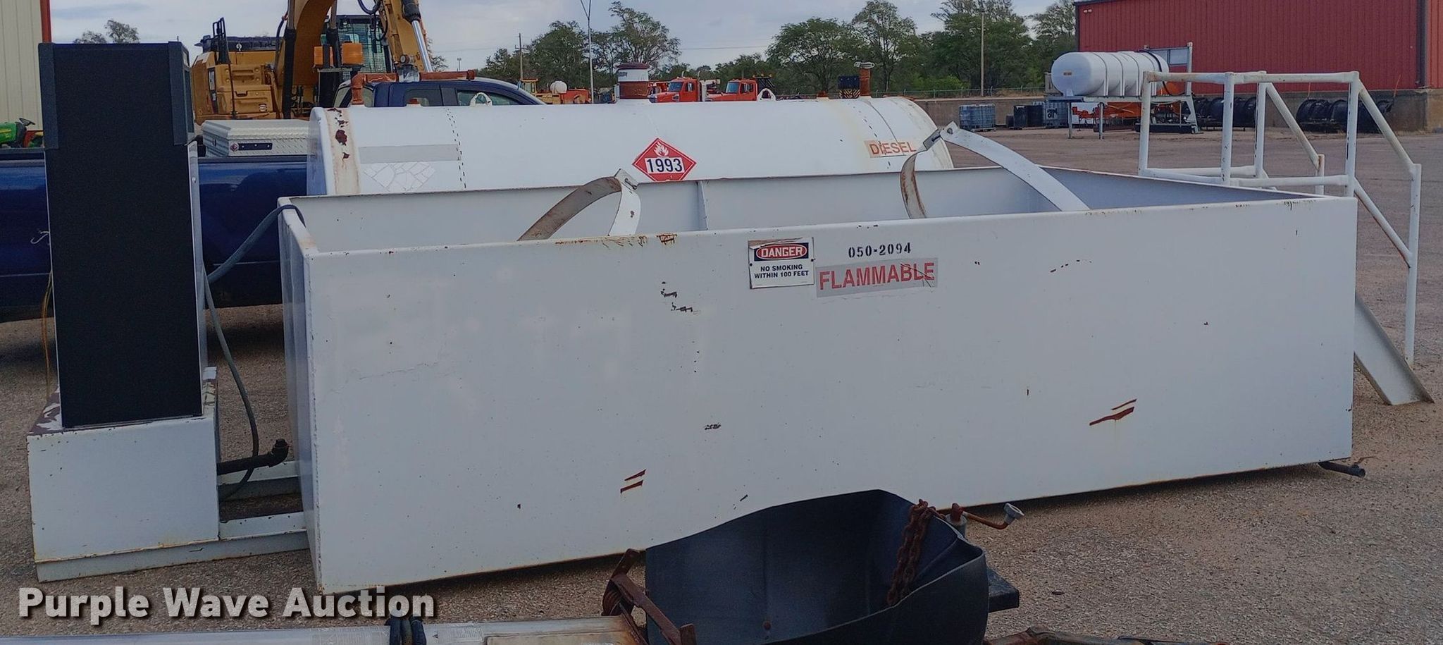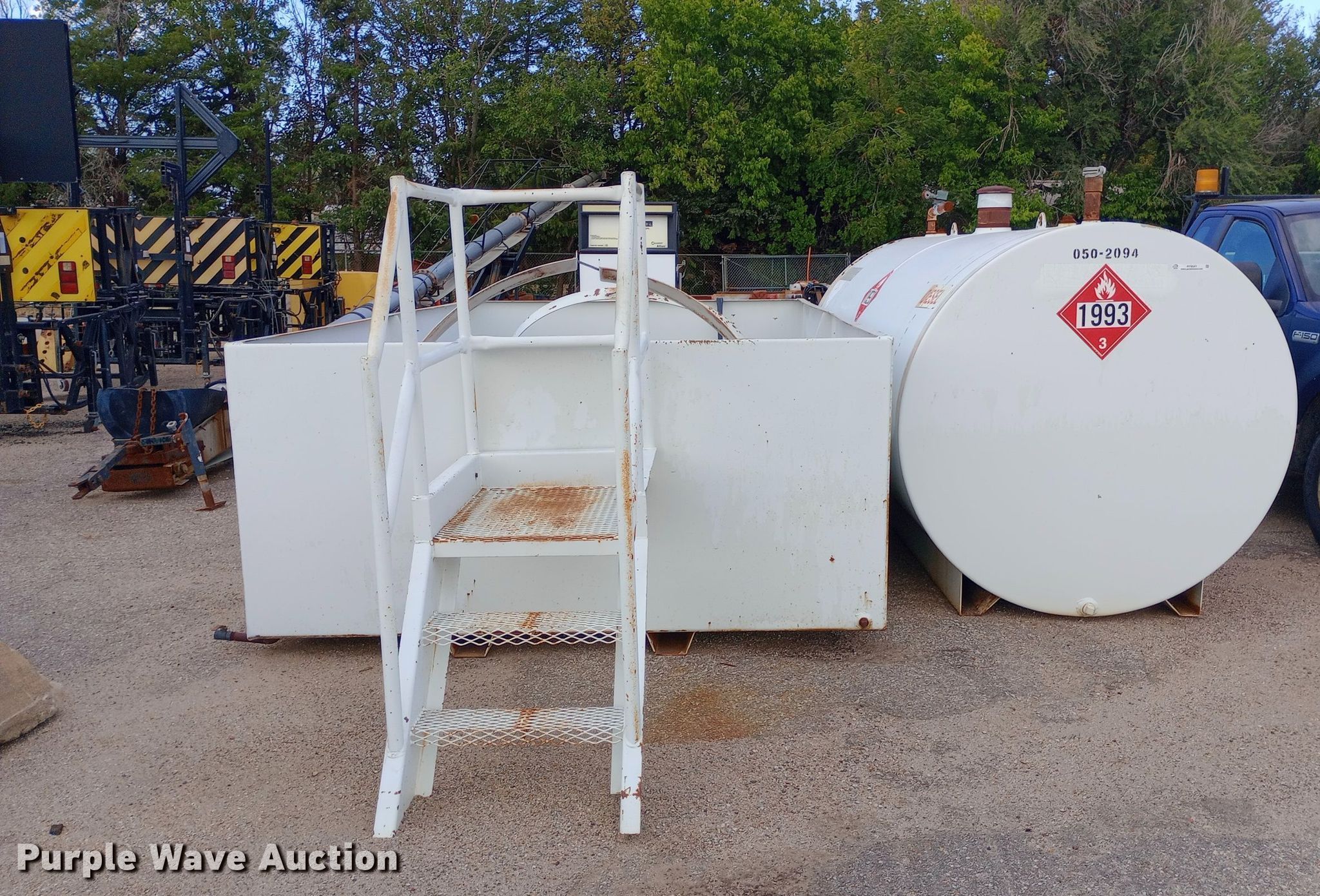 Purple Wave is selling a used Fuel and Lube in Kansas. This item is a Diesel fuel tank with the following: Capacity: Approx. 2,000 gallon, Spill containment, Pump, Atlas, KDOT ID: 050-2094