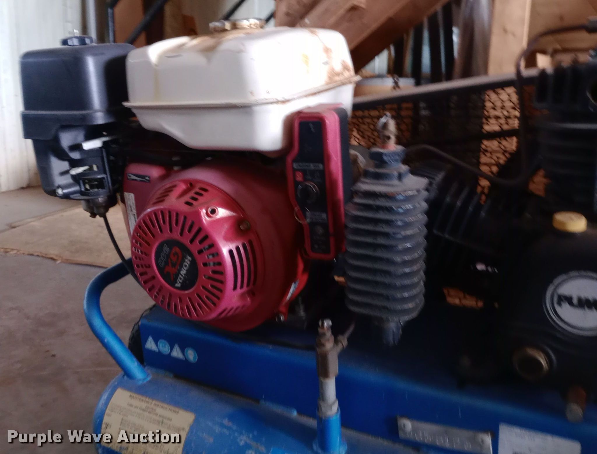 Puma TUE8008HGE air compressor. Serial: KWA113, KDOT ID: 463-5123. Engine Honda GX240, Cylinders: 1, Fuel type: Gas. Features Air compressor CFM: 12.5, PSI: 175, Tank capacity: 8 gallons. Kansas Dept. of Transportation-Shop. Hutchinson, KS 67504