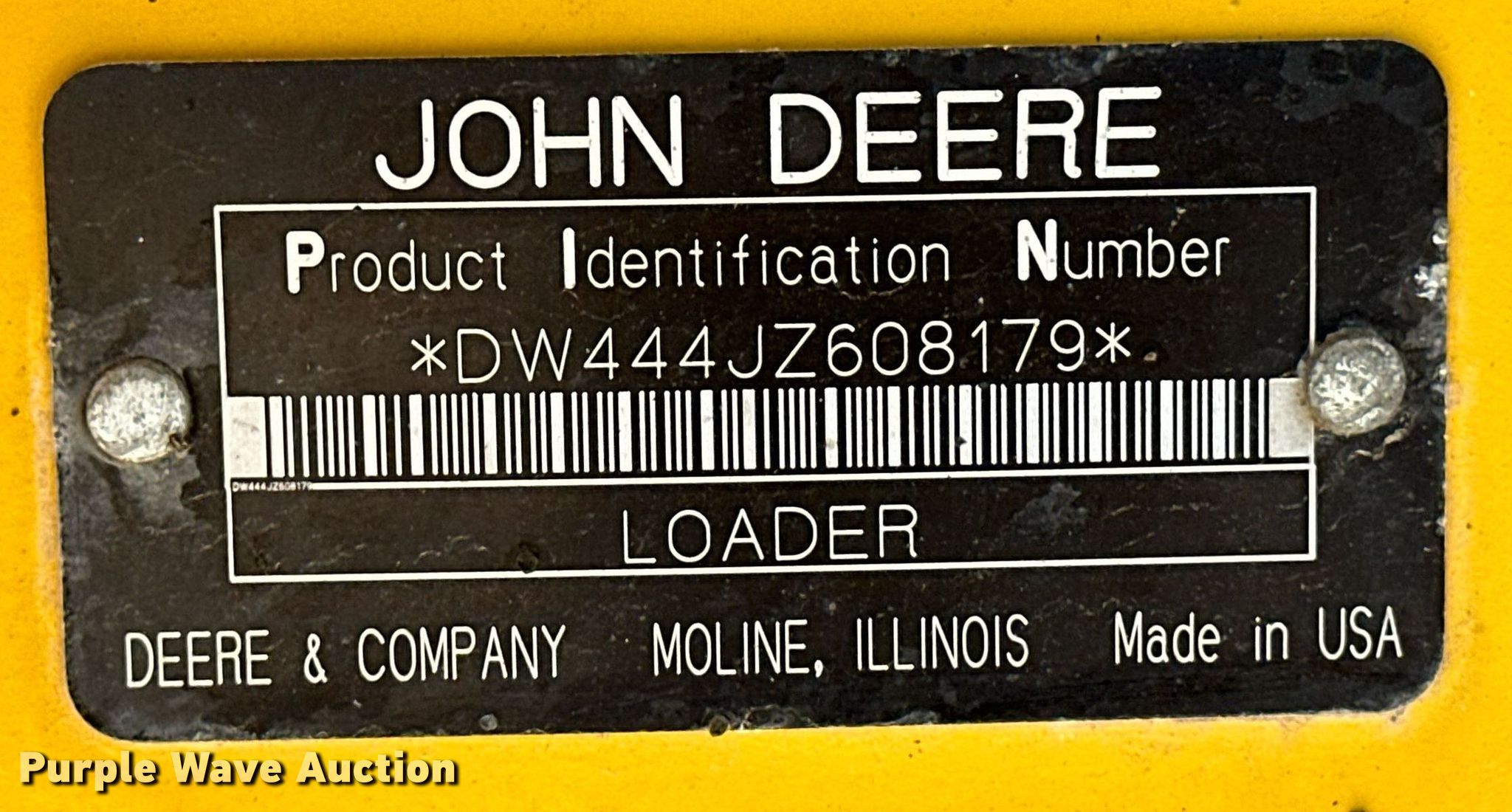 Purple Wave is selling a used Wheel Loader in Kansas. This item is a 2006 John Deere 444J wheel loader with the following: Hours: 5,316 on meter, Serial: DW444JZ608179, KDOT ID: 365-6046