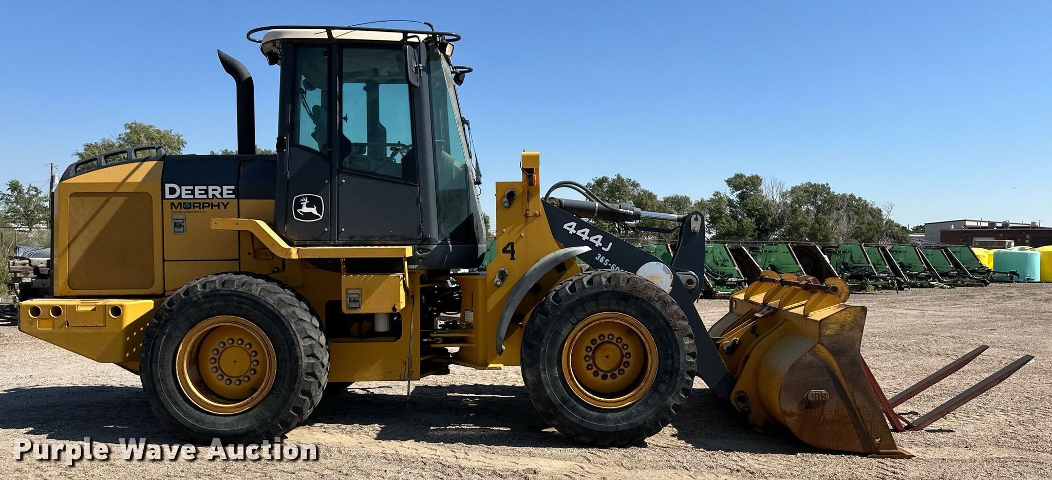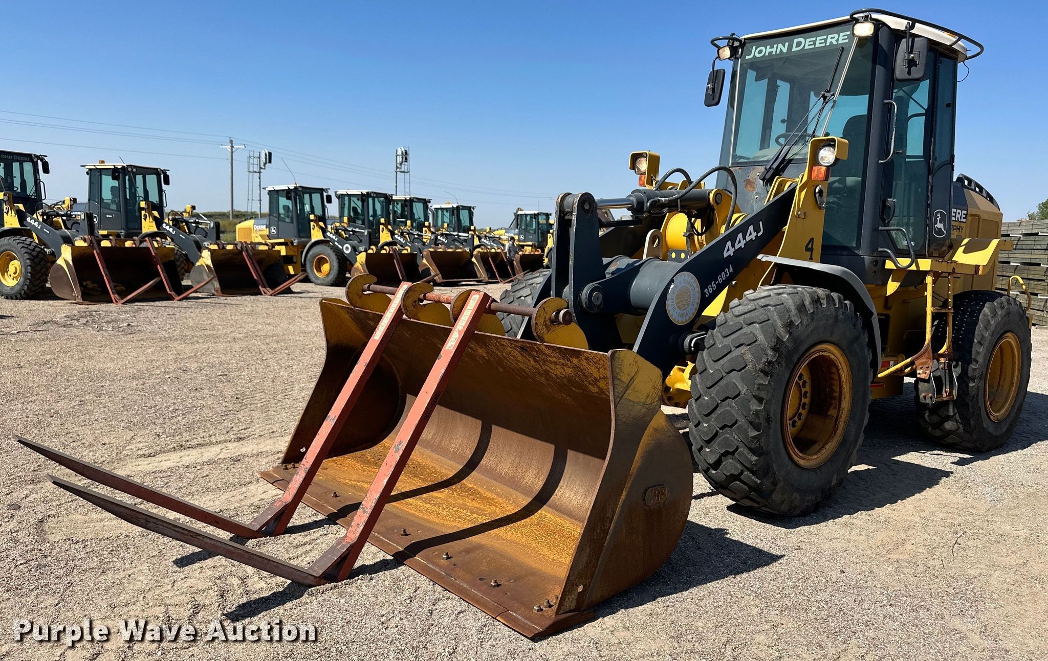 Purple Wave is selling a used Wheel Loader in Kansas. This item is a 2005 John Deere 444J wheel loader with the following: Hours: 3,745 on meter, Serial: DW444JZ595146, KDOT ID: 365-6034