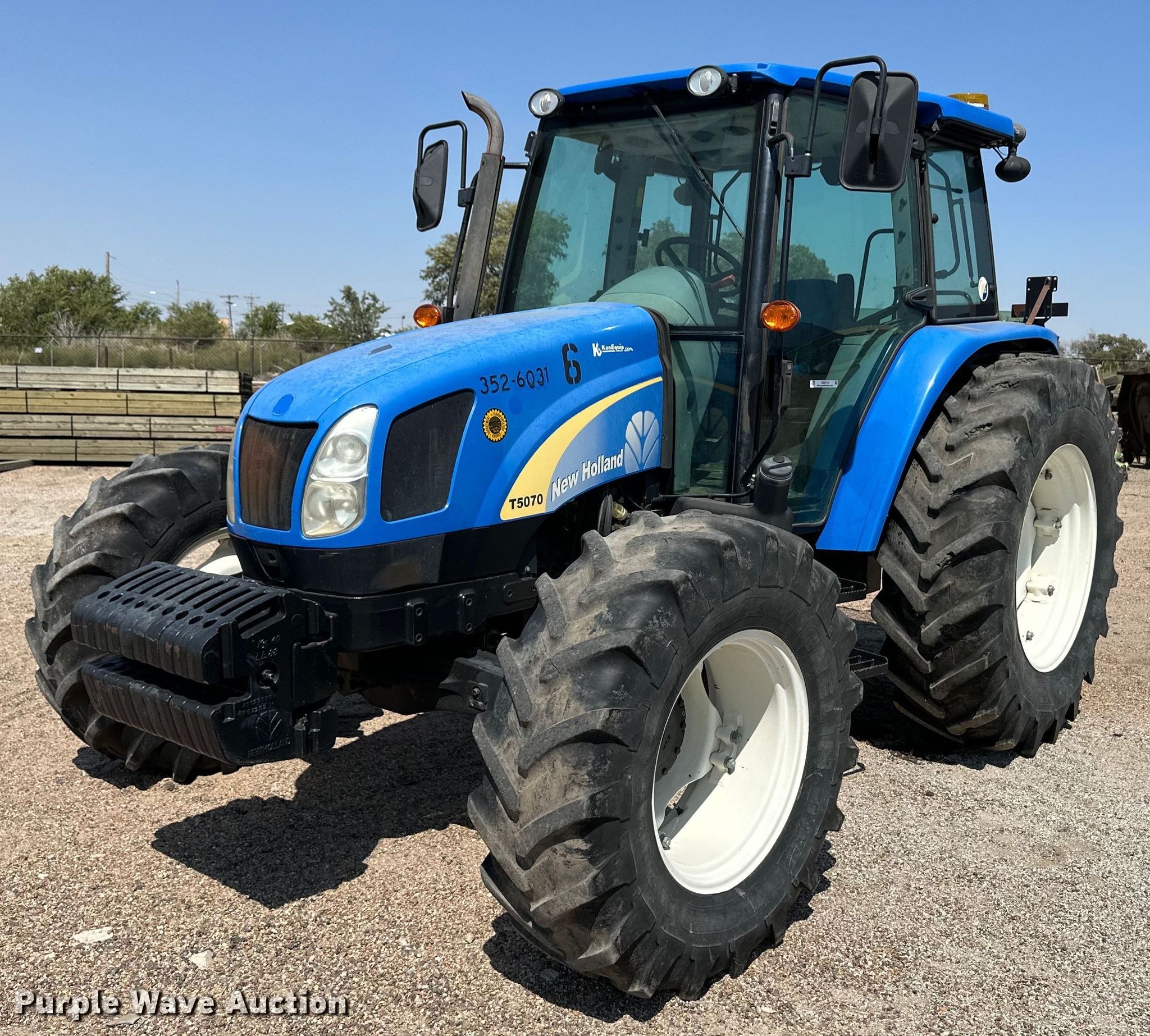 Purple Wave is selling a used Tractor in Kansas. This item is a 2011 New Holland T5070 MFWD tractor with the following: Hours: 3,451 on meter, Serial: ZBJH08734, KDOT ID: 352-6031