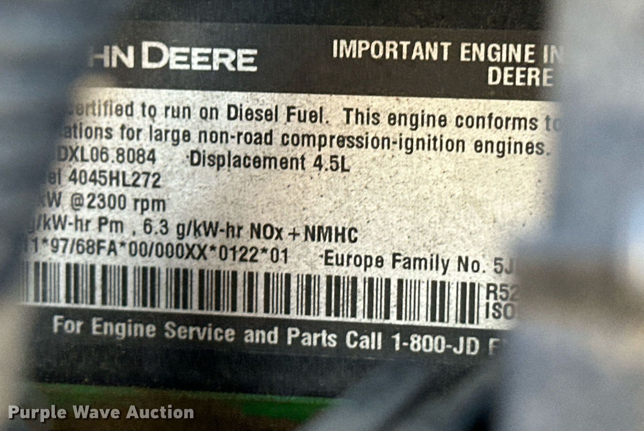 2006 John Deere 6415 tractor. Hours: 4,276 on meter, Serial: LO6415B457026, KDOT ID: 352-6015. Engine John Deere, Displacement: 4.5L, Cylinders: 4, Fuel type: Diesel. Transmission Synchro, 16F - 16R, Left-hand reverser. Operators station AC, Heat. Features PTO: 540, Three point Top link, Seven pin outlet, Hydraulic remote sets Rear: 3. Tires Front: 10.00-16, Rear: 460/85R30. Notes AC issues. Kansas Department of Transportation - Garden City. Garden City, KS 67846