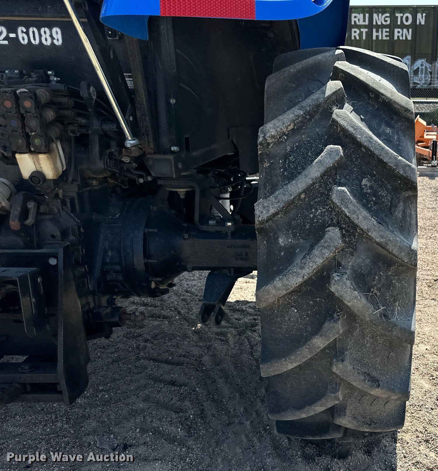 2009 New Holland T6020 tractor. Hours: 4,009 on meter, Serial: Z8BD20296, KDOT ID: 352-6089. Engine Displacement: 4.5L, Cylinders: 4, Fuel type: Diesel, HP: 115. Transmission Dual Command, 24F - 24R, Left-hand reverser, Differential lock. Operators station AC, Heat. Features PTO: 540, Seven pin outlet, Hydraulic remote sets Rear: 3. Tires Front: 11L-16SL, Rear: 18.4R30. Notes Hydraulic leak behind fuel tank. Kansas Department of Transportation - Garden City. Garden City, KS 67846