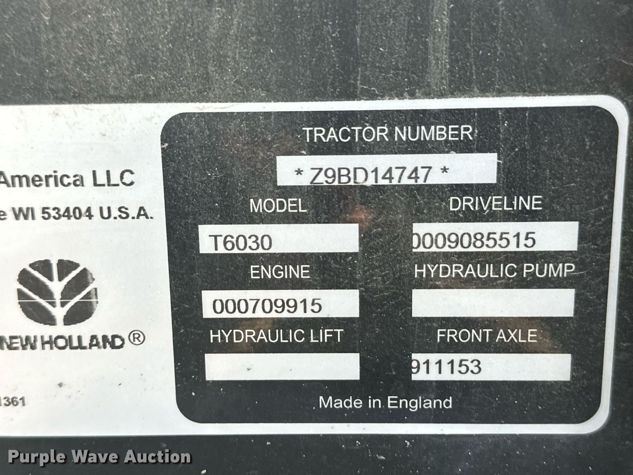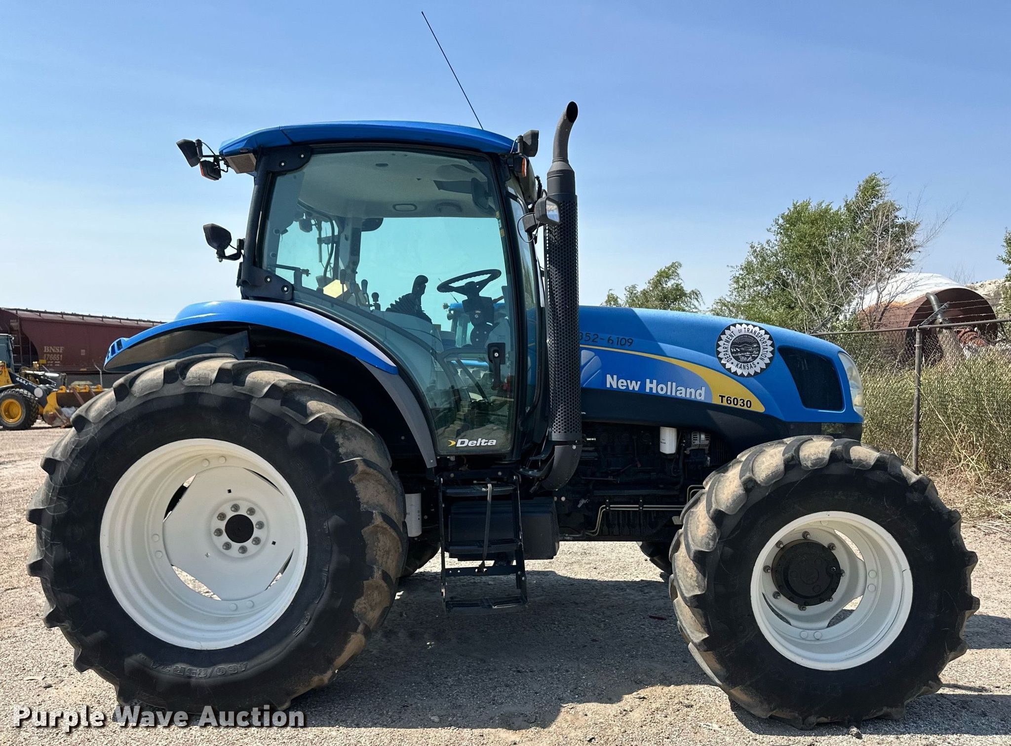 Purple Wave is selling a used Tractor in Kansas. This item is a 2010 New Holland T6030 MFWD tractor with the following: Hours: Unknown, Serial: Z9BD14747, KDOT ID: 352-6109
