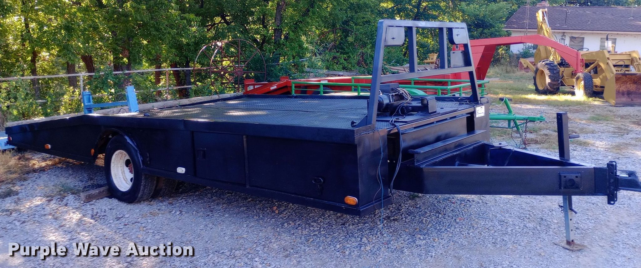Purple Wave is selling a used Equip. Trailer in Oklahoma. This item is a Shop built equipment trailer with the following: Overall: 24' 8" L x 96" W, Deck: 12' L x 96" W, Tail length: 7' 8", Ramps: Manual, Length: 6'