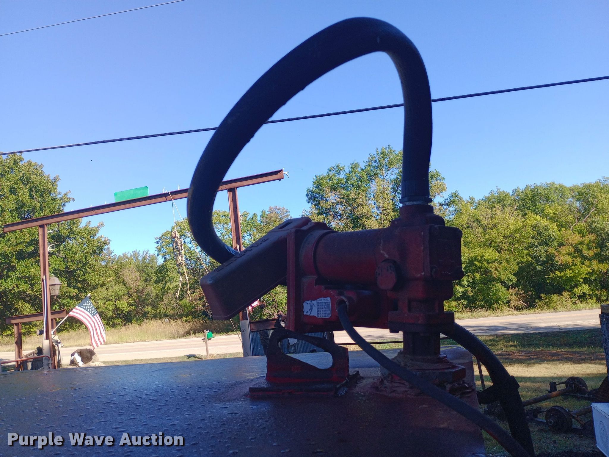 Shop built fuel trailer. Dimensions. Overall: 10' 8" L x 60" W. Features Tank type: Steel Capacity: 500 gallons, Pump Fill-Rite. Chassis Ball hitch: 2", Landing gear: Single. Tires Steel wheels, Size: 78-14ST. Transfer of ownership documentation will be a bill of sale. Ponca City, OK 74604