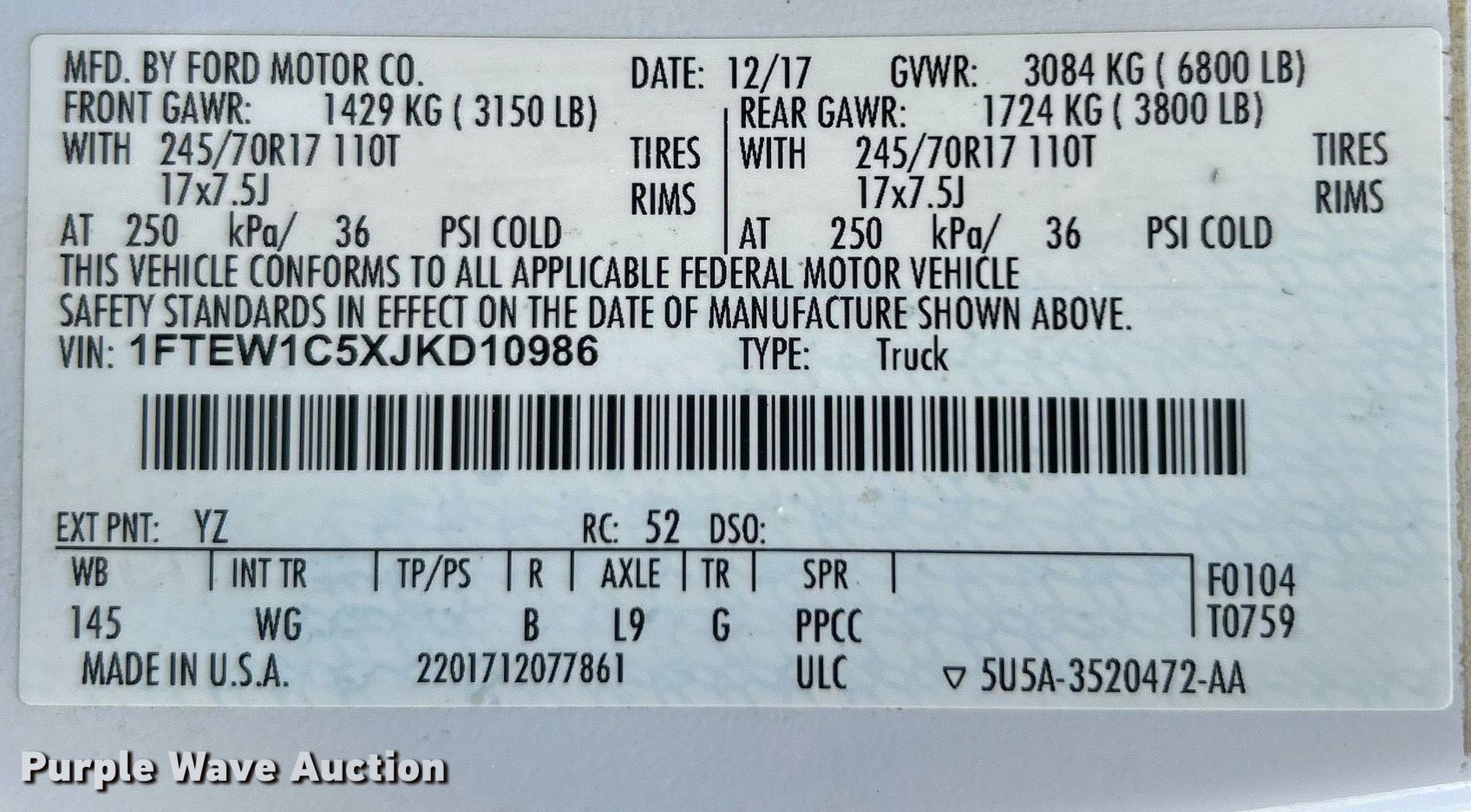This 2018 Ford F150 XL SuperCrew pickup truck will sell to the highest bidder regardless of price.